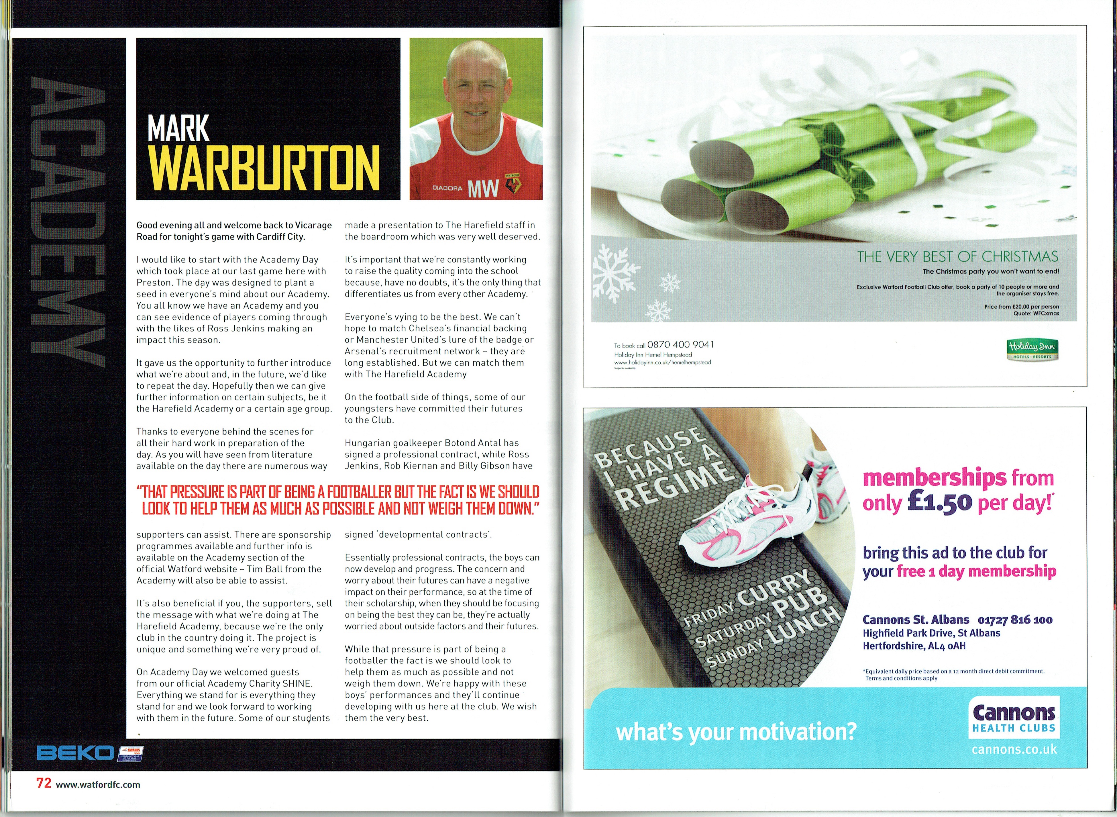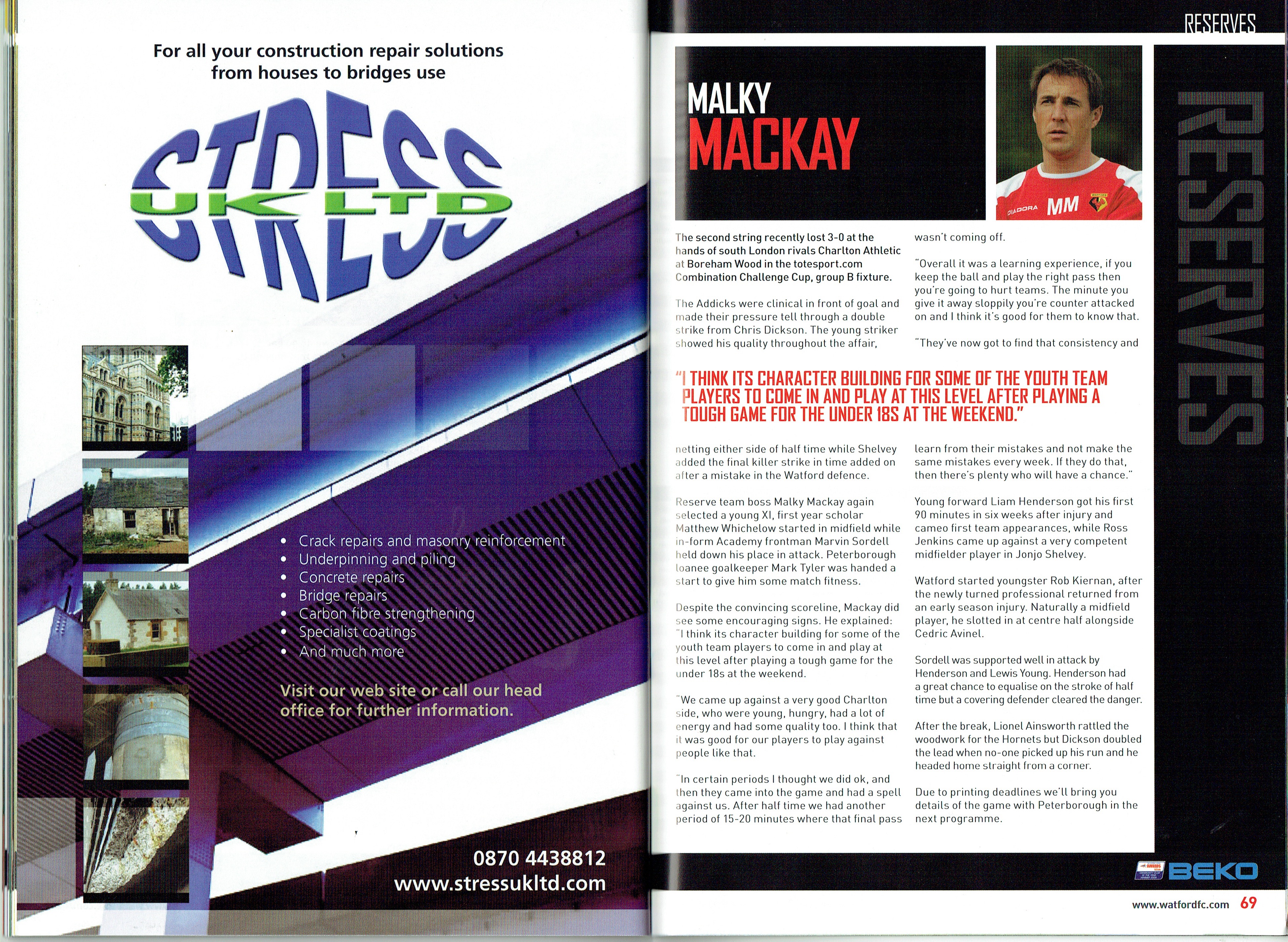 1st November 2008- Championship, Watford 3 Blackpool 4 Leave a Reply Aidy Boothroyd’s final programme notes Blackpool equalised three times before Alan Gow’s last-gasp winner. Will Hoskins, Grzegorz Rasiak and Tommy Smith from the penalty spot all put Watford in front at various stages of a thrilling game. Of all the decent players that have left the club over the past few years, the one you’d have back quickest – with the possible exception of Ben Foster – and with a few fewer miles on the clock, would be Malky Mackay. Which begs the question… how can a defence that is being “coached” by Mackay look as utterly, comprehensively, incapable of doing the job? Watford have appointed reserve-team coach Malky Mackay as caretaker manager following the departure of Adrian Boothroyd last night. Mackay will be assisted by first-team coach Martin Hunter while the club search for a suitable replacement for Boothroyd. http://watford.fcdb.info?s=35051&id=4831 Share this: Share on X (Opens in new window) X Share on Facebook (Opens in new window) Facebook
