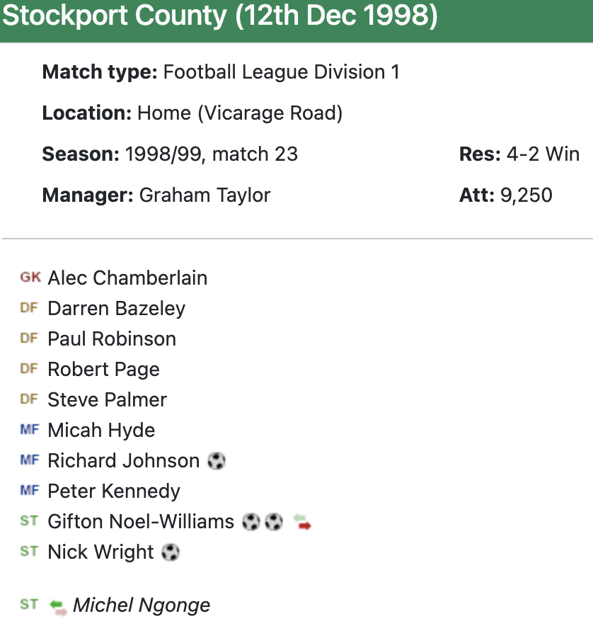 Before the game it was announced that Elton John was returning as Watford chairman and a consortium of businessmen including Elton was buying Jack Petchey’s shares in the club.