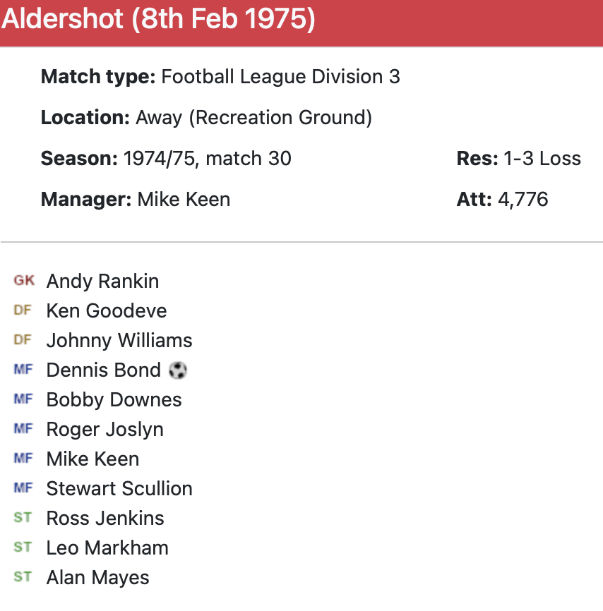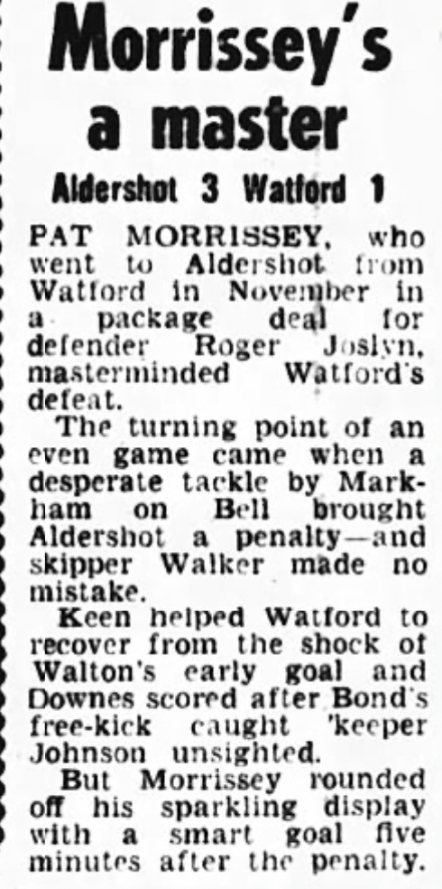 8th February 1975- Division Three, Aldershot 3 Watford 1 Leave a Reply https://watford.fcdb.info/index.php?page=matches Sunday Mirror, 9 Feb 1975 Sunday People, 9 Feb 1975 Watford Observer match report https://www.soccerbase.com/matches/results.sd?date=1975-02-08 https://www.11v11.com/league-tables/league-division-three/08-february-1965/ Share this: Click to share on X (Opens in new window) X Click to share on Facebook (Opens in new window) Facebook