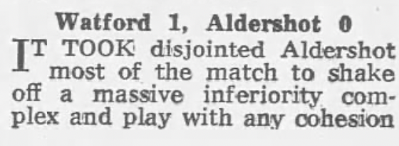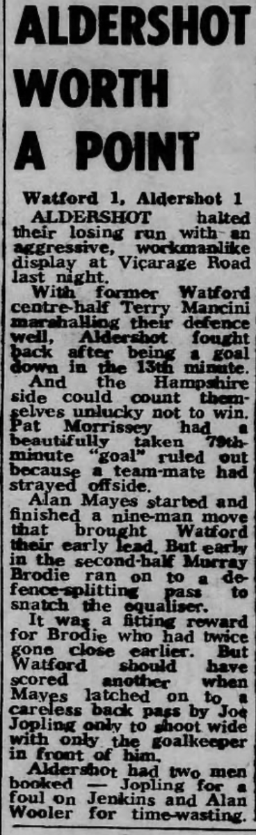 2nd November 1976- Division Four, Watford 1 Aldershot 1 Leave a Reply http://watford.fcdb.info?s=35179&id=3144 Daily Mirror, 3 Nov 1976 Southern Daily Echo, 3 Nov 1976 Share this: Click to share on X (Opens in new window) X Click to share on Facebook (Opens in new window) Facebook