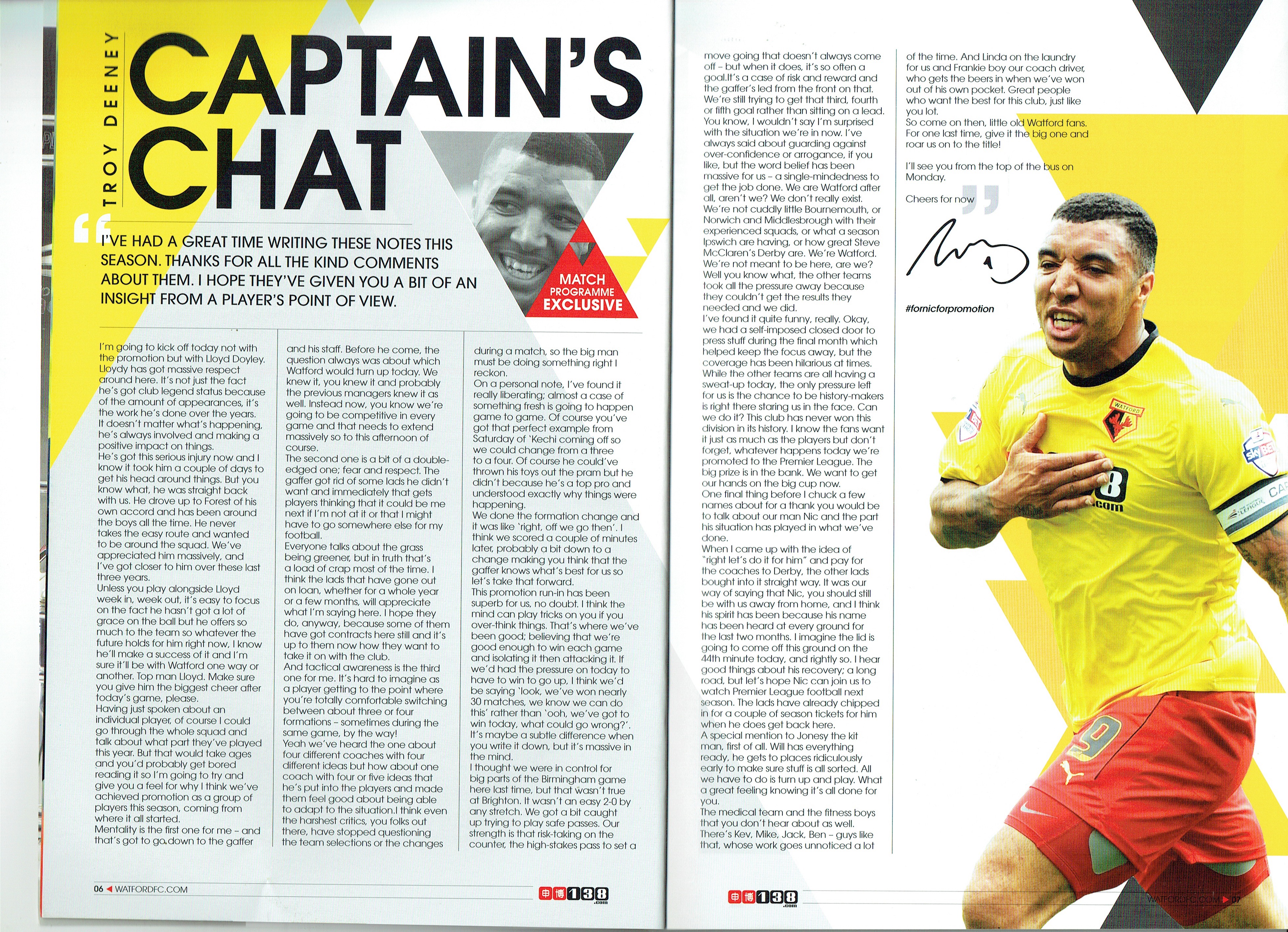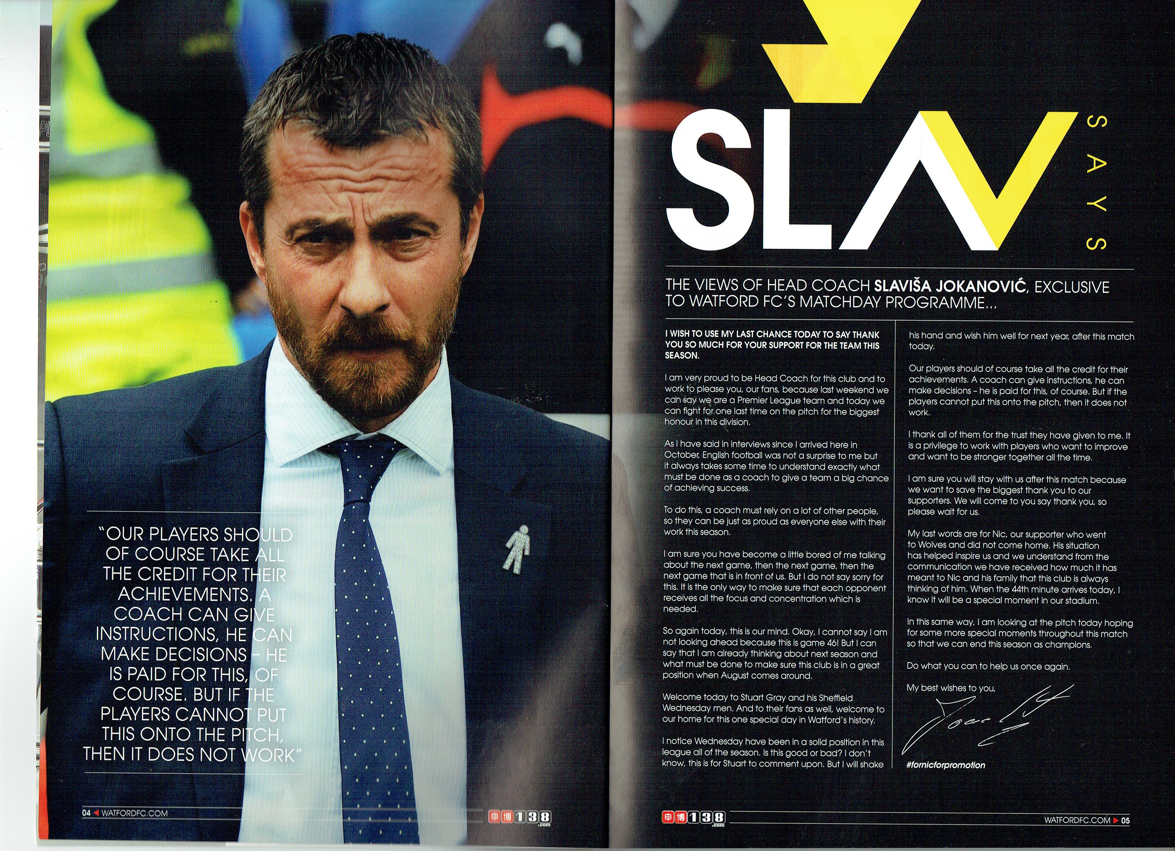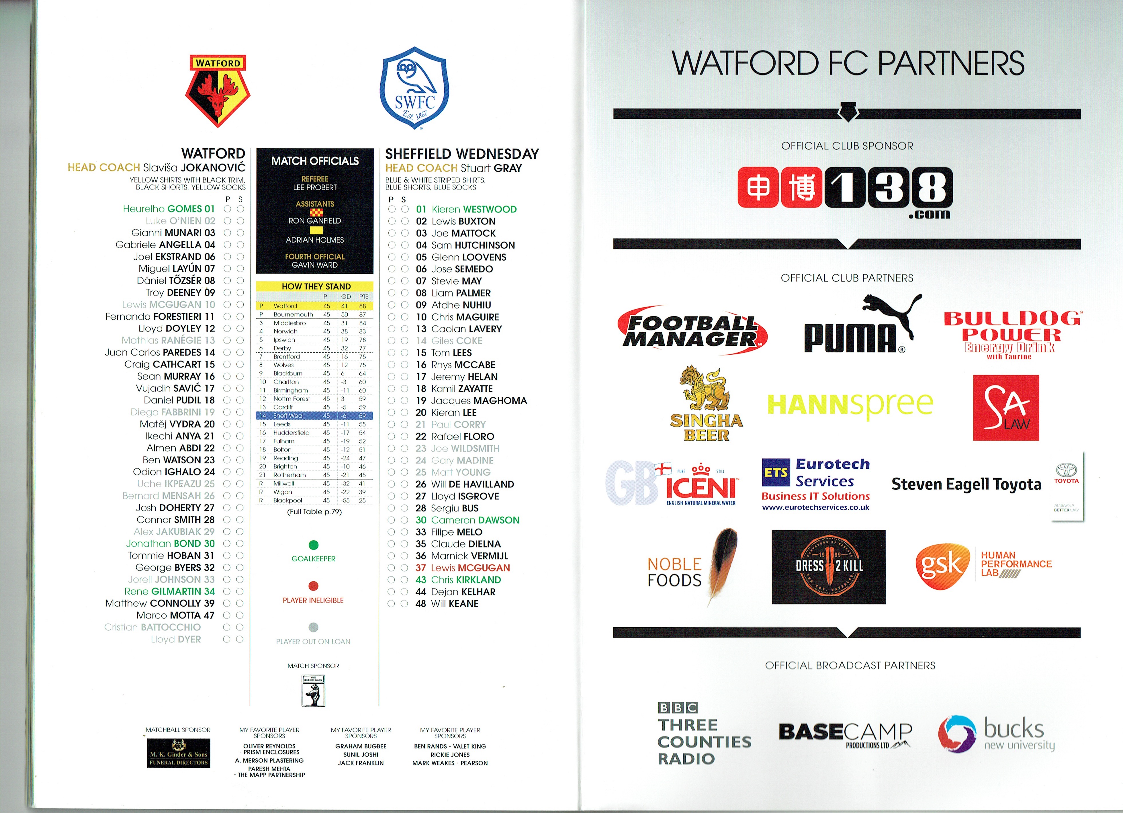 As for the supporters… similarly, perhaps Watford’s best ever season in this regard (cap doffed again to the 1881) doesn’t deserve to be remembered for the cretin whose pitch invasion interrupted Wednesday’s free kick, for the vermin responsible for flares who deserve bans from the ground, for the vanity of those who decided that invading the pitch was more important that having a reason to invade the pitch. Ed Perchard has penned a wordier assassination of these imbeciles in In the Wolf’s Mouth but in any case, choking as the narrowness of the margin was these were all irritants. None should be used as excuses for our failure to put Wednesday away.