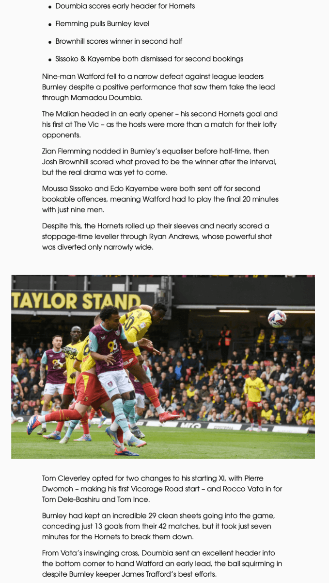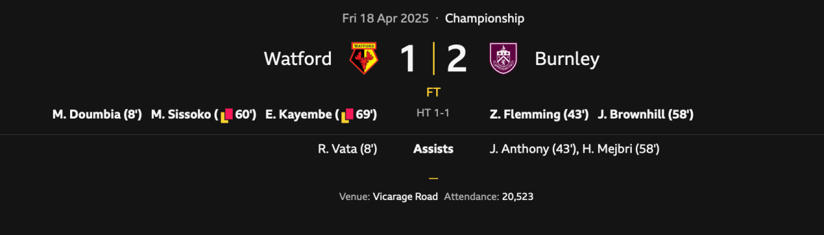 Watford Observer: RECAP: Watford 1 Burnley 2