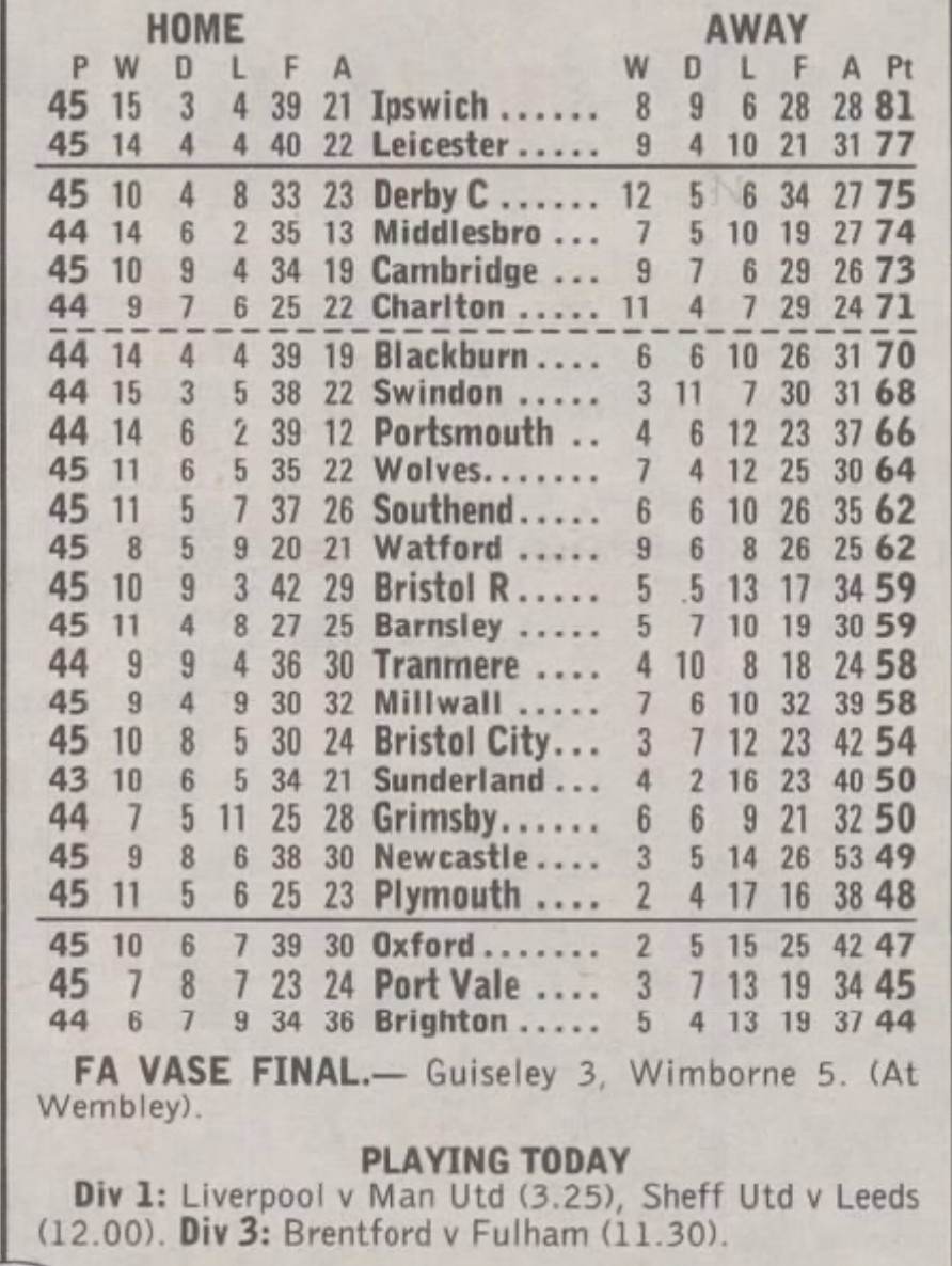 The game was televised so kicked off earlier than the other Championship games but our win coupled with Norwich drawing at Rotherham and Middlesbrough losing to Fulham meant we were promoted to the Premier League.