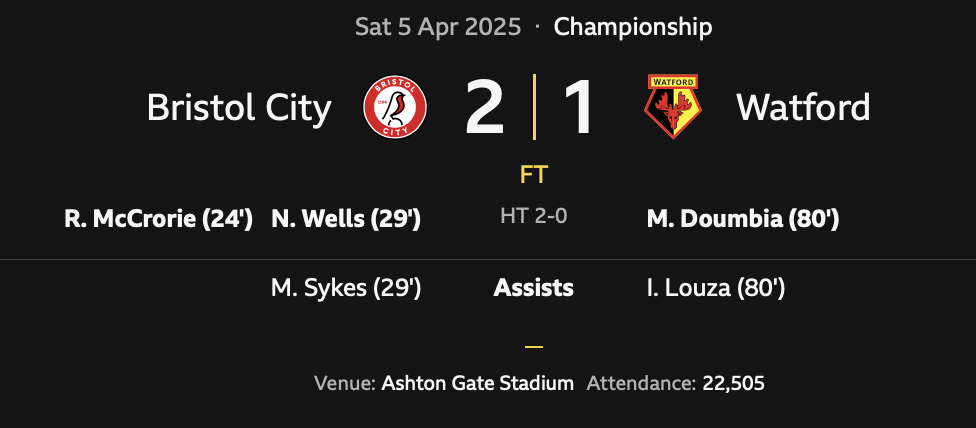 Watford Observer: RECAP: Bristol City 2 Watford 1
