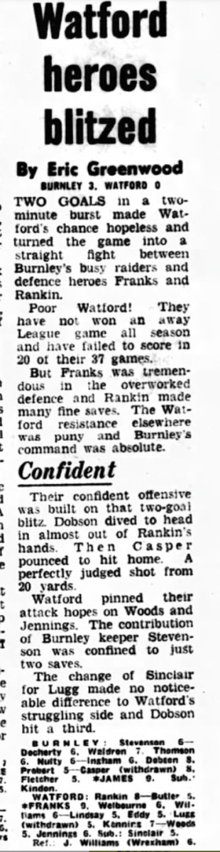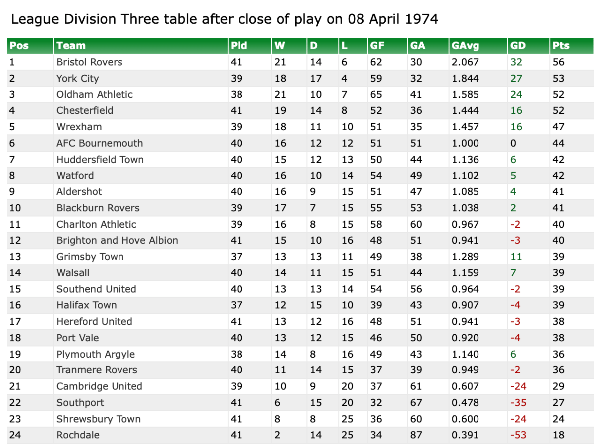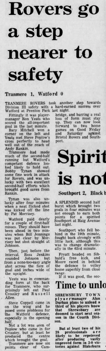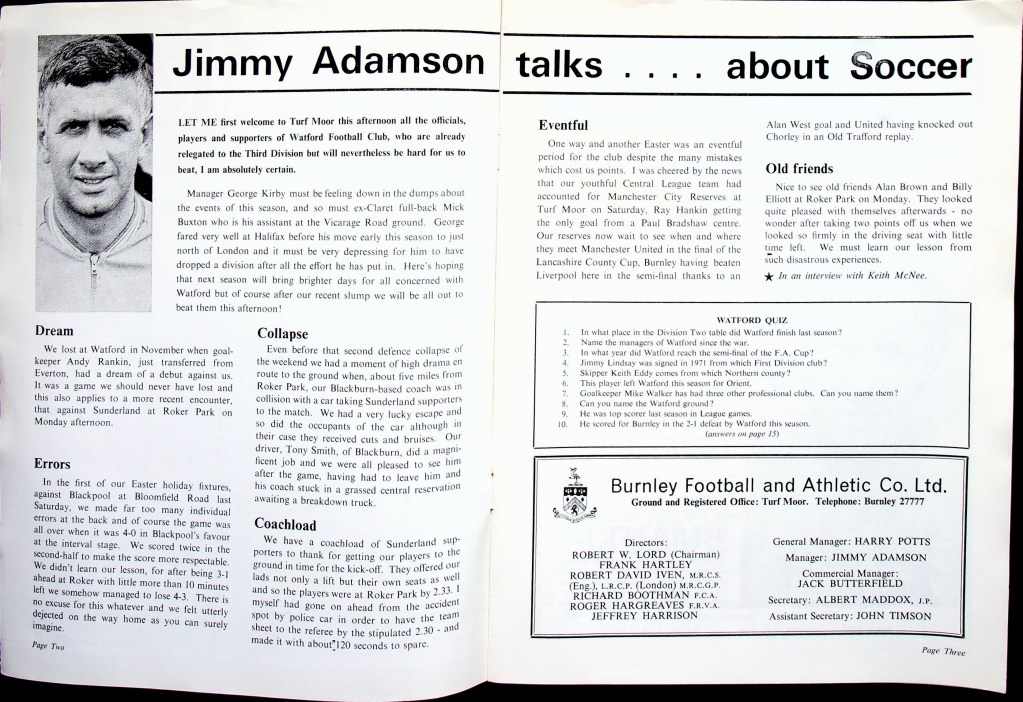 The article in the Football League Review, given away with this and many programmes at the time, was very out of date. Our relegation had already been confirmed a week earlier.
