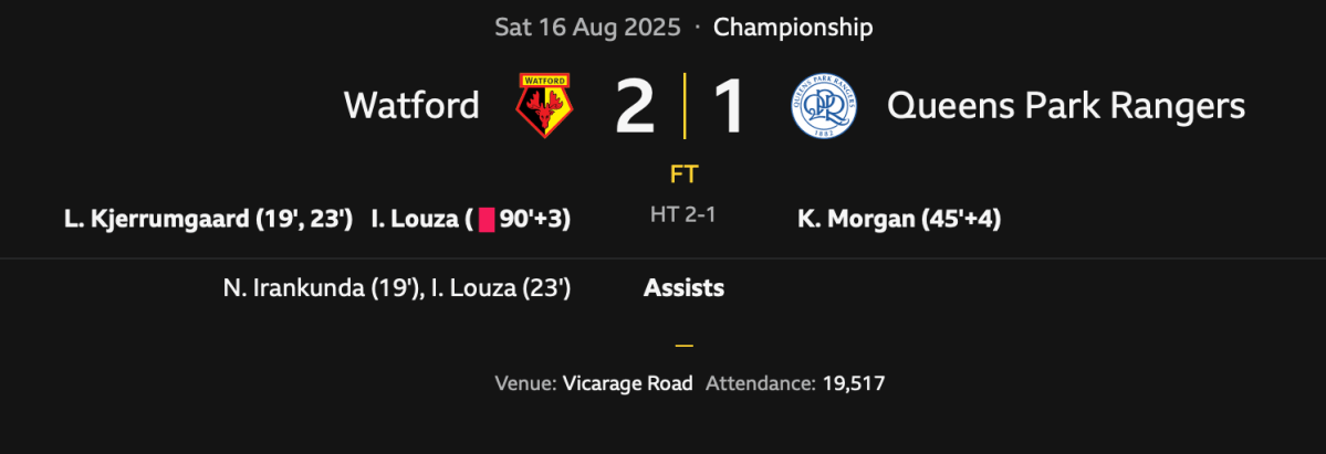 Watford Observer: RECAP: Watford 2-1 Queens Park Rangers