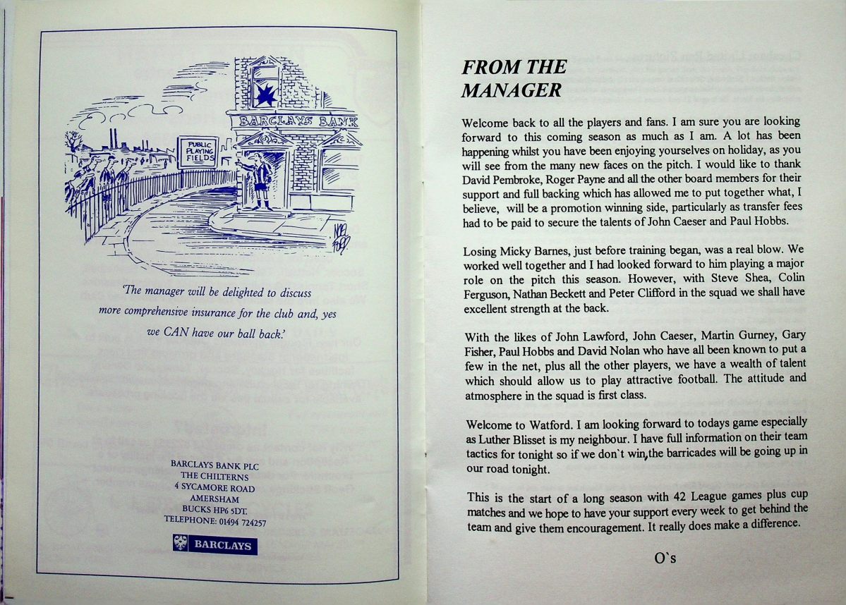 Taken from the programme on 31st July 2015- Friendly, Watford 0 Sevilla 1