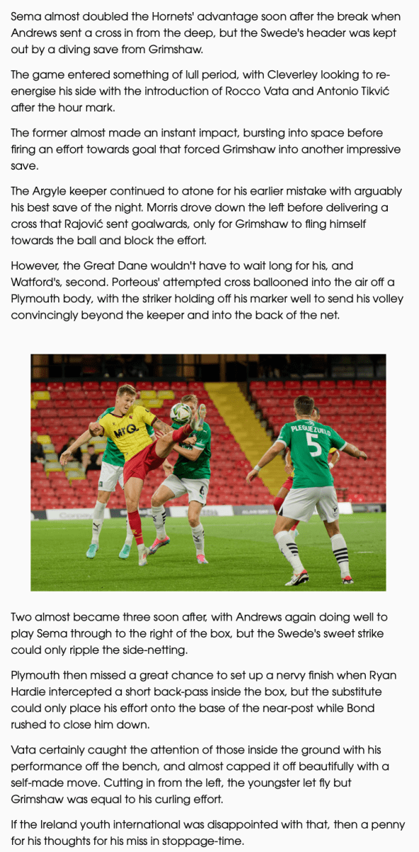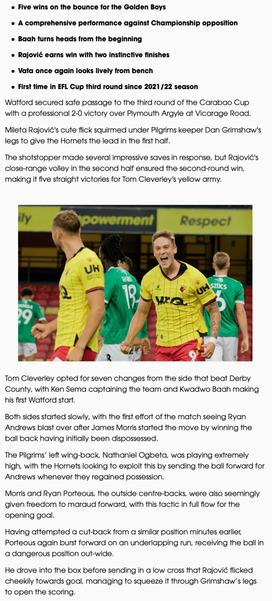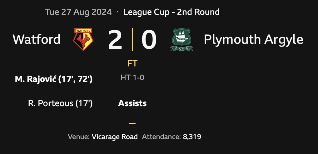 Watford 2 Plymouth 0 – how the Carabao Cup tie unfolded