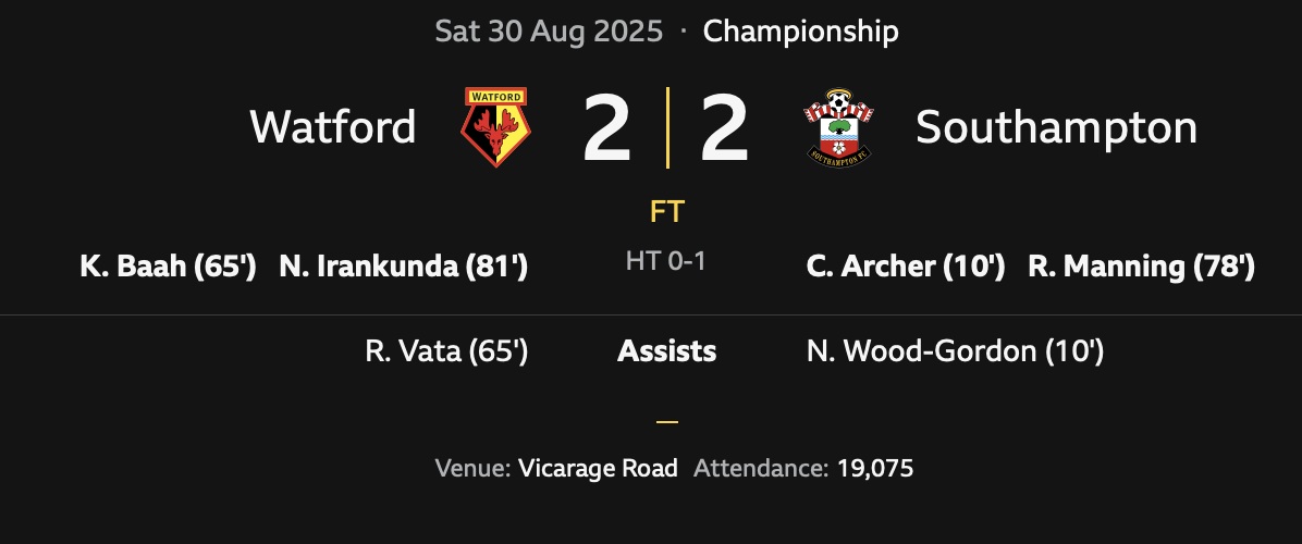 Watford Observer: RECAP: Watford 2-2 Southampton