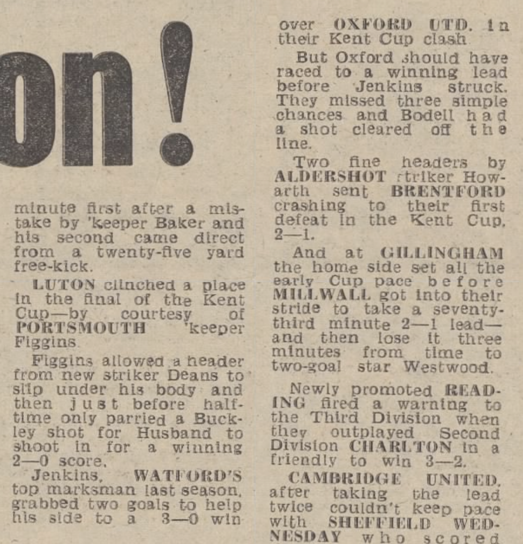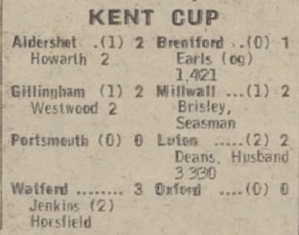 For programme see https://oldwatford.com/1976/07/31/31st-july-1976-kent-charity-cup-section-a-watford-0-luton-town-1/