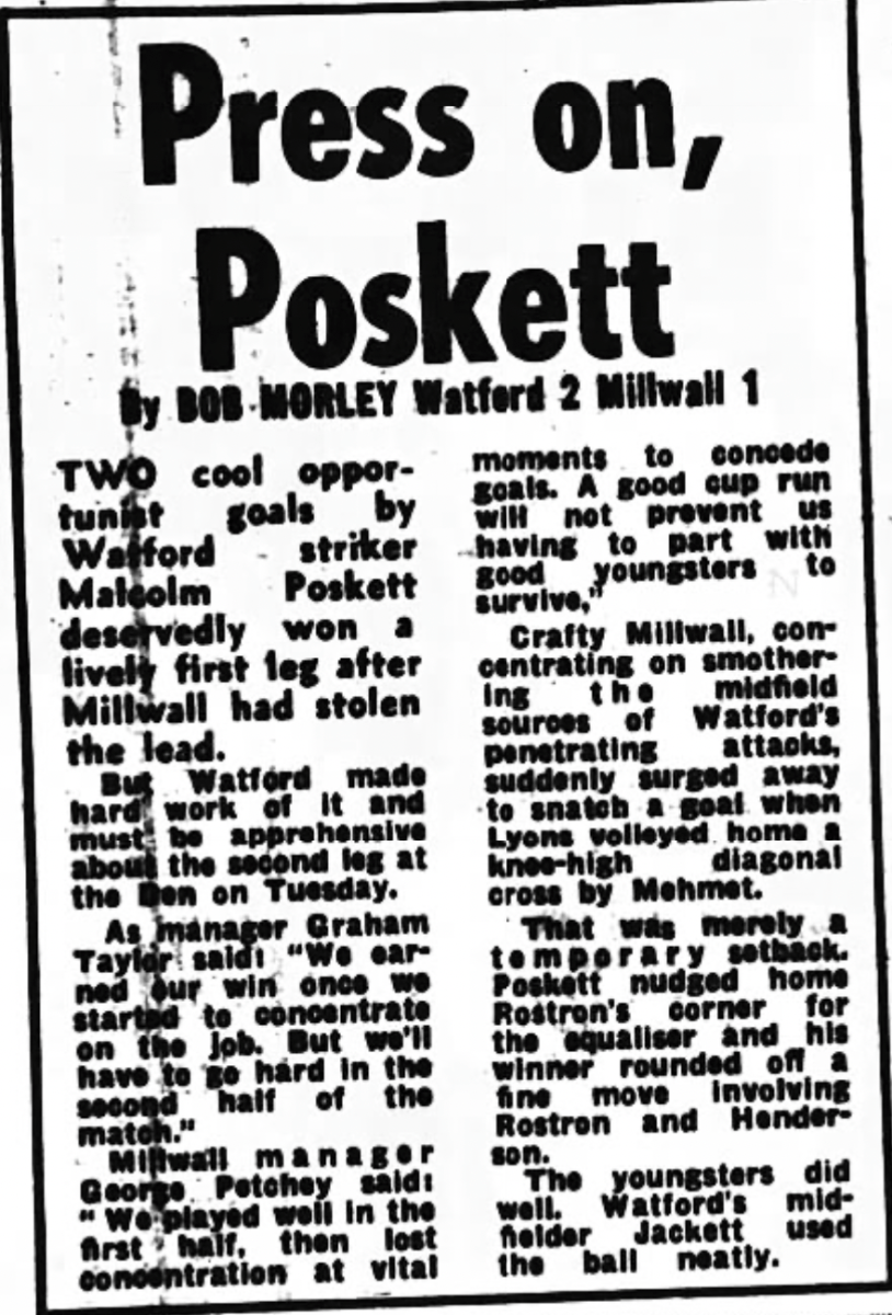 9th August 1980- League Cup First Round First Leg, Watford 2 Millwall 1 Leave a Reply Watford Observer match report Sunday People, 10 Aug 1980 https://oldwatford.com/1980/08/16/16th-august-1980-division-two-watford-2-swansea-city-1/ Share this: Share on X (Opens in new window) X Share on Facebook (Opens in new window) Facebook