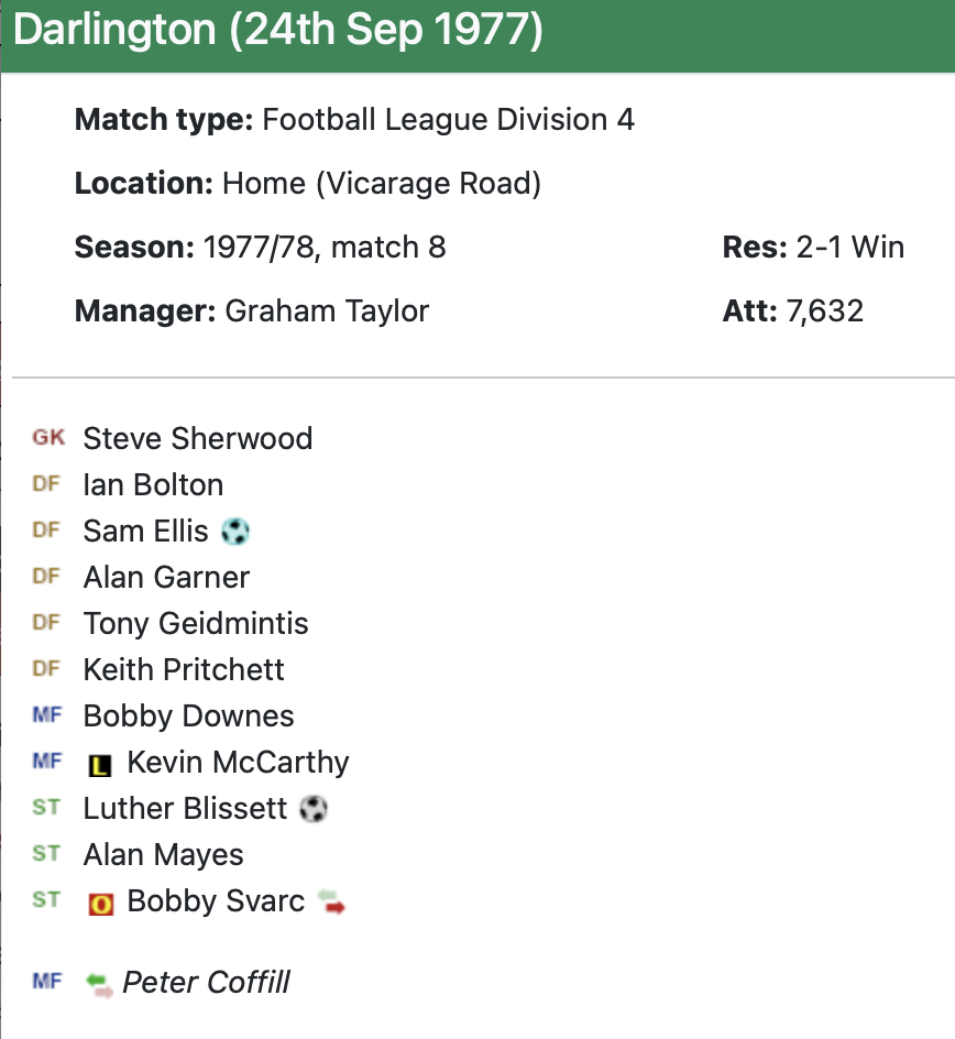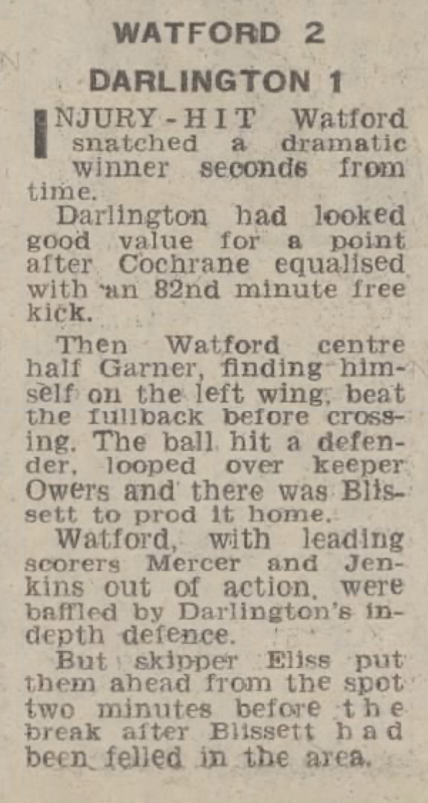 24th September 1977-Division Four, Watford 2 Darlington 1 Leave a Reply https://watford.fcdb.info/index.php?page=matches Sunday Mirror, 25 Sep 1977 Sunday People, 25 Sep 1977 Watford Observer match report Taken from the programme on 29th April 2000- Premier League, Watford 2 Manchester United 3 Share this: Share on X (Opens in new window) X Share on Facebook (Opens in new window) Facebook