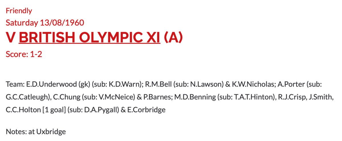 Whereabouts in Uxbridge this was played isn’t recorded but I would guess it was at the old Honeycroft ground in Cowley which was home to Uxbridge FC from 1948-78.