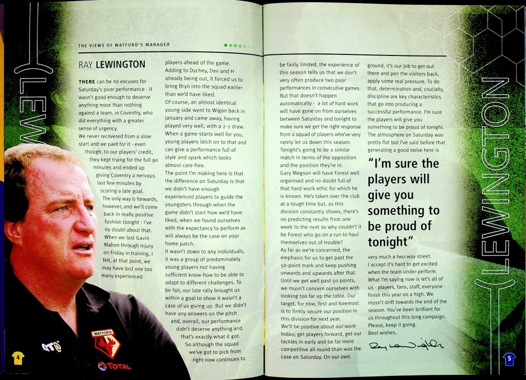 17th January 2004- New Division One, Watford 1 Crystal Palace 5 Leave a Reply The Hornets were looking for some cheer following their FA Cup exit at the hands of Chelsea in midweek but Palace were in no mood to oblige. Where to start, really. This was an absolute horror, make no mistake. The repercussions could be catastrophic. That there are positives to be drawn from the performance, that we have played worse, significantly worse, this season perhaps makes it all the more horrific. As I put it to my dad on the way back from the ground: a team of Keith Dublins could not have done any worse. Share this: Click to share on X (Opens in new window) X Click to share on Facebook (Opens in new window) Facebook