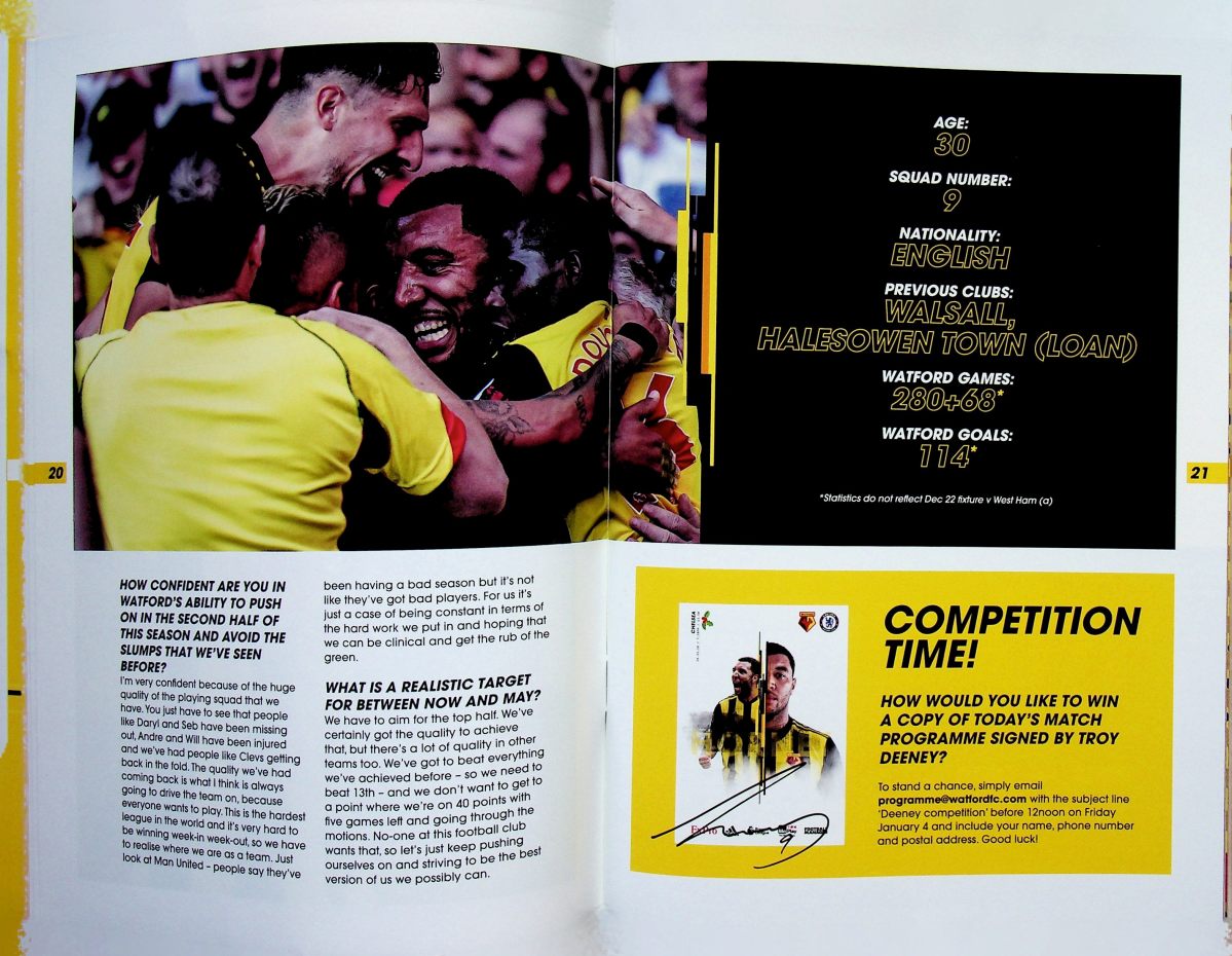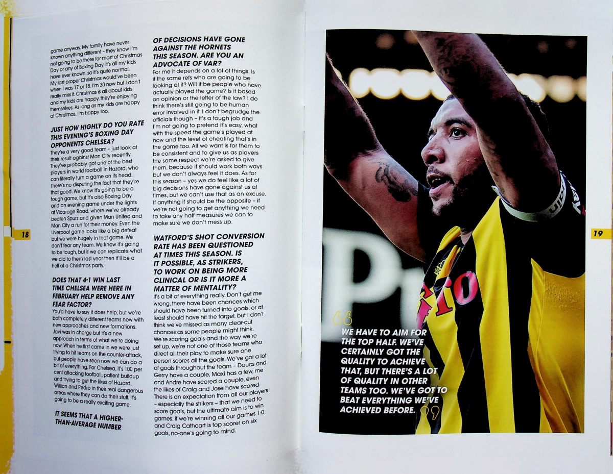 The silence inside the stadium produced its usual revelations. Deeney really does spend a lot of time talking to, bonding with, and generally getting to know the linesman. Foster does a lot of shouting about metres and distances when the opposition has a free-kick near his goal. And Giroud’s agonised howl of pain on being fouled outside the box, a howl so loud you half expected to look up and see him holding his foot in one hand, was enough to draw an actual laugh from Frank Lampard.