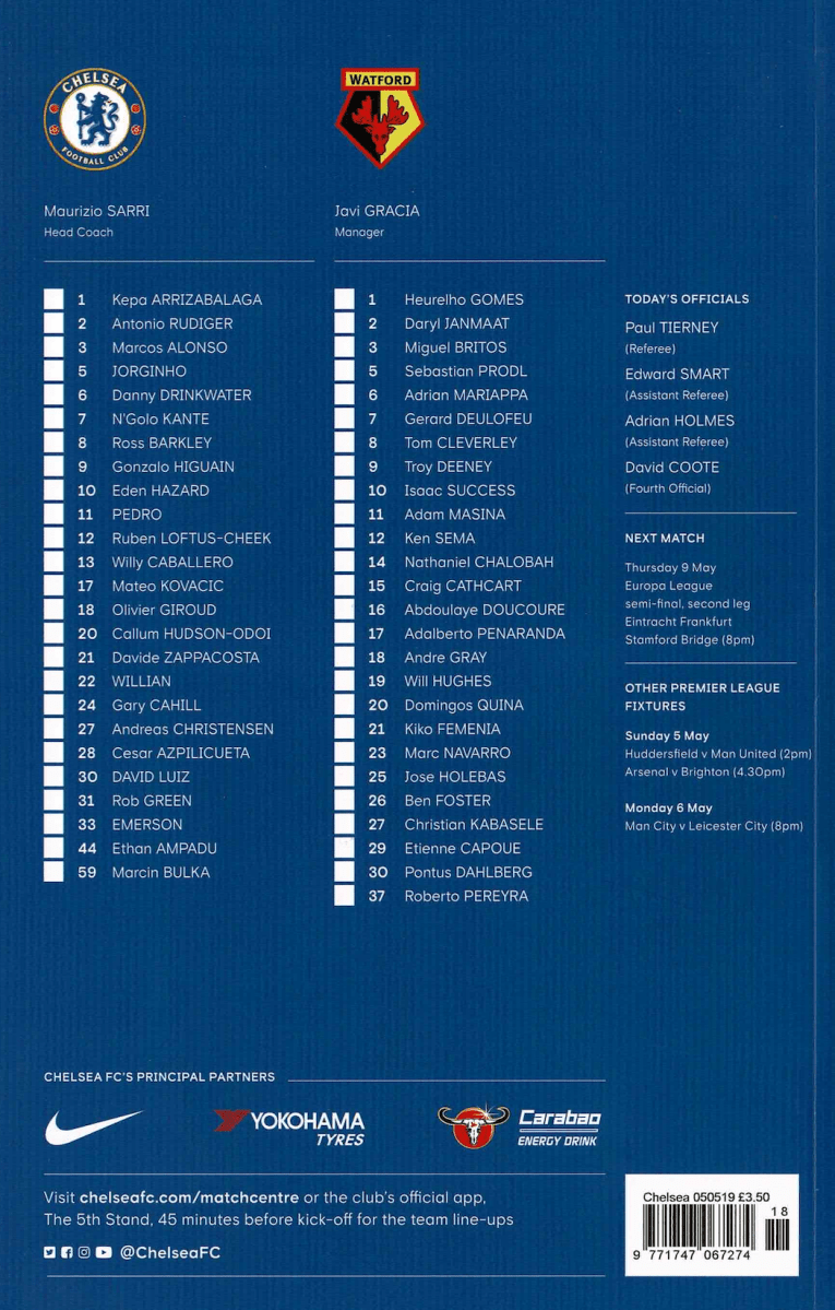 An Olivier Giroud goal and a Willian penalty had the hosts firmly in control in the first-half, before Ross Barkley’s finish in stoppage time sealed a miserable evening out for the Hornets, who remain teetering precariously above the relegation zone, after once again struggling to cause significant problems for their opponent’s goalkeeper.