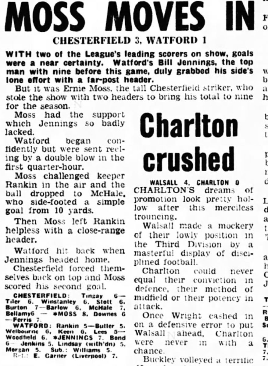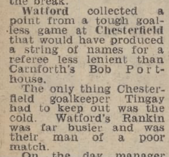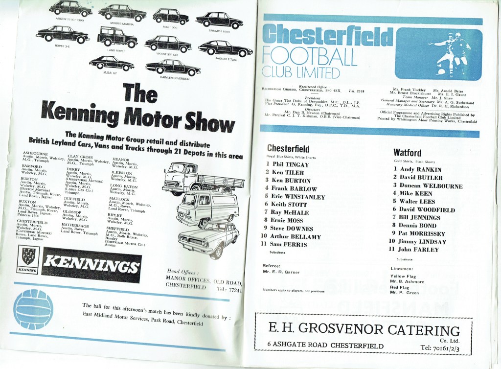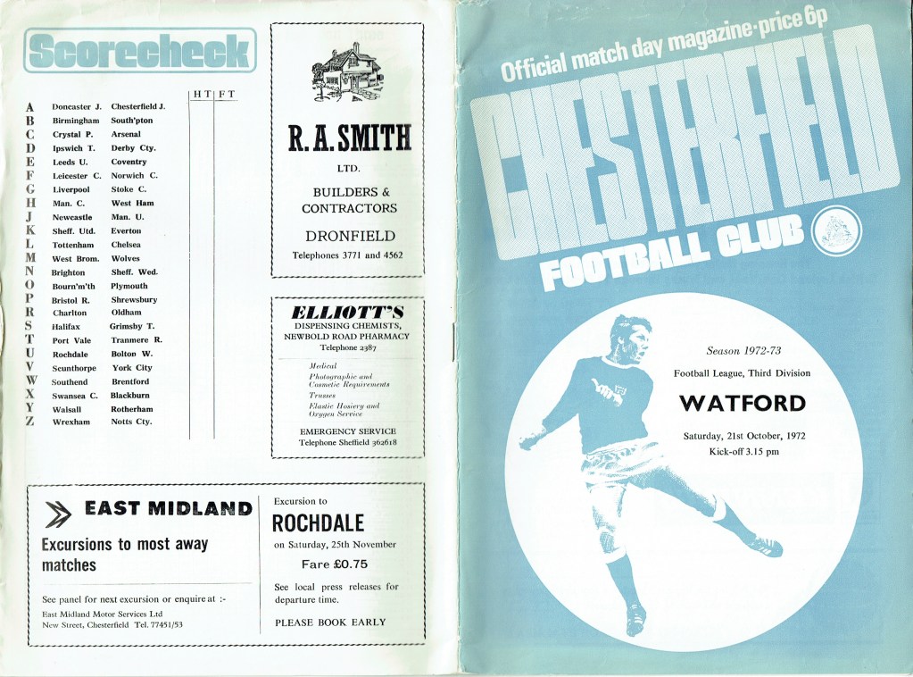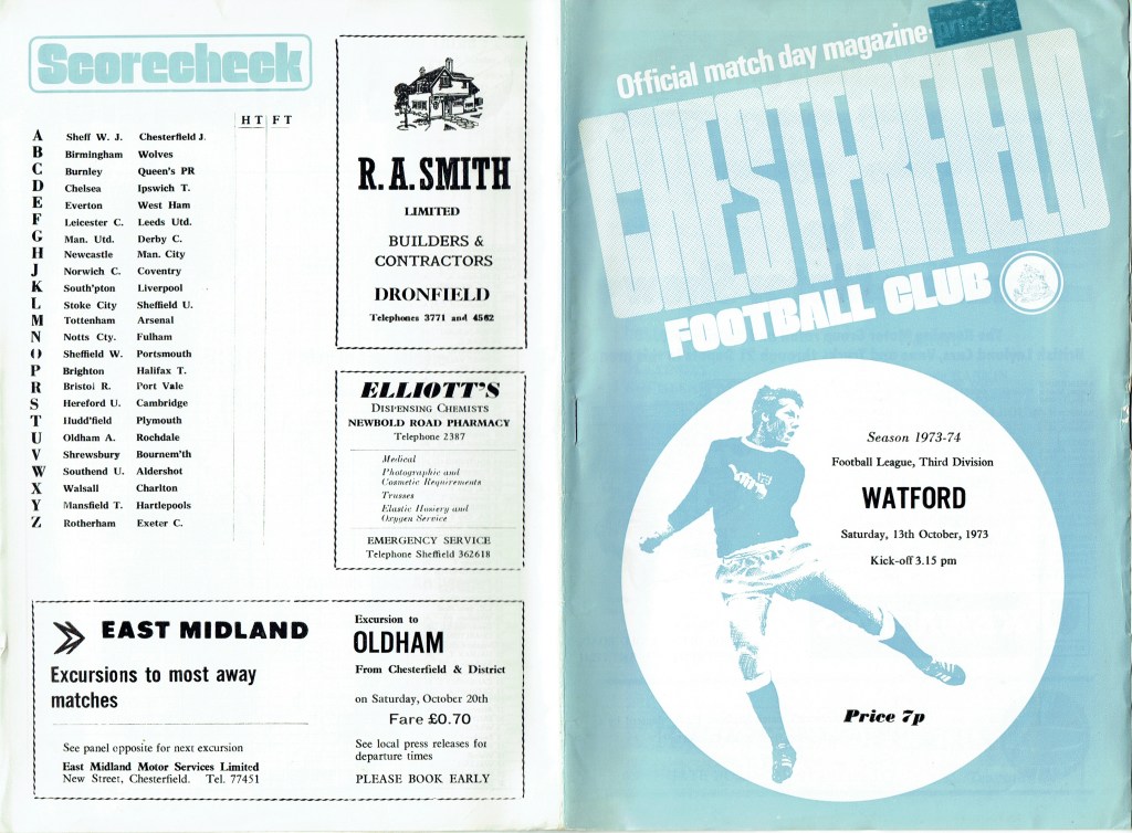 26th October 1974- Division Three, Chesterfield 4 Watford 4 http://watford.fcdb.info/index.php?page=matches Sunday Mirror, 27 Oct 1974 Sunday Mirror, 27 Oct 1974 Watford Observer match report https://www.soccerbase.com/matches/results.sd?date=1974-10-26 https://www.11v11.com/league-tables/league-division-three/26-october-1974/ Share this: Share on X (Opens in new window) X Share on Facebook (Opens in new window) Facebook