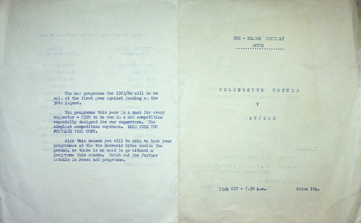 Same programme issued as on 14th August 1982- Football League Trophy Group One, Watford 4 Orient 1