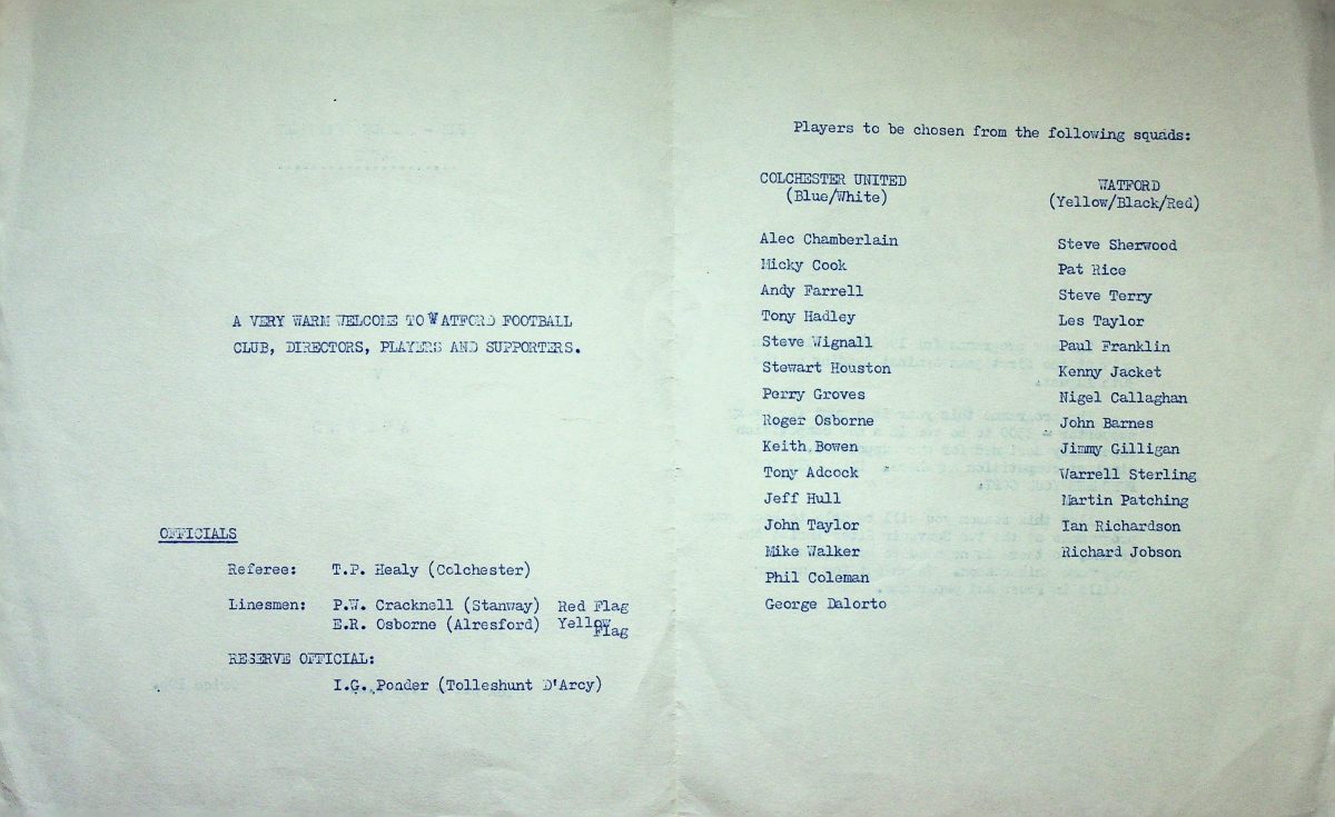 (Taken from Watford v Swansea City programme, 21 August 1979)