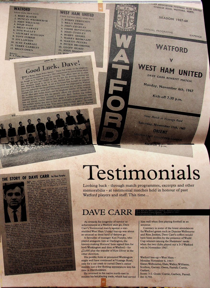 6th November 1967- Dave Carr Benefit Match, Watford 3 West Ham United 2 Leave a Reply Watford Observer match report https://oldwatford.com/2019/05/12/12th-may-2019-premier-league-watford-1-west-ham-united-4/ Share this: Share on X (Opens in new window) X Share on Facebook (Opens in new window) Facebook