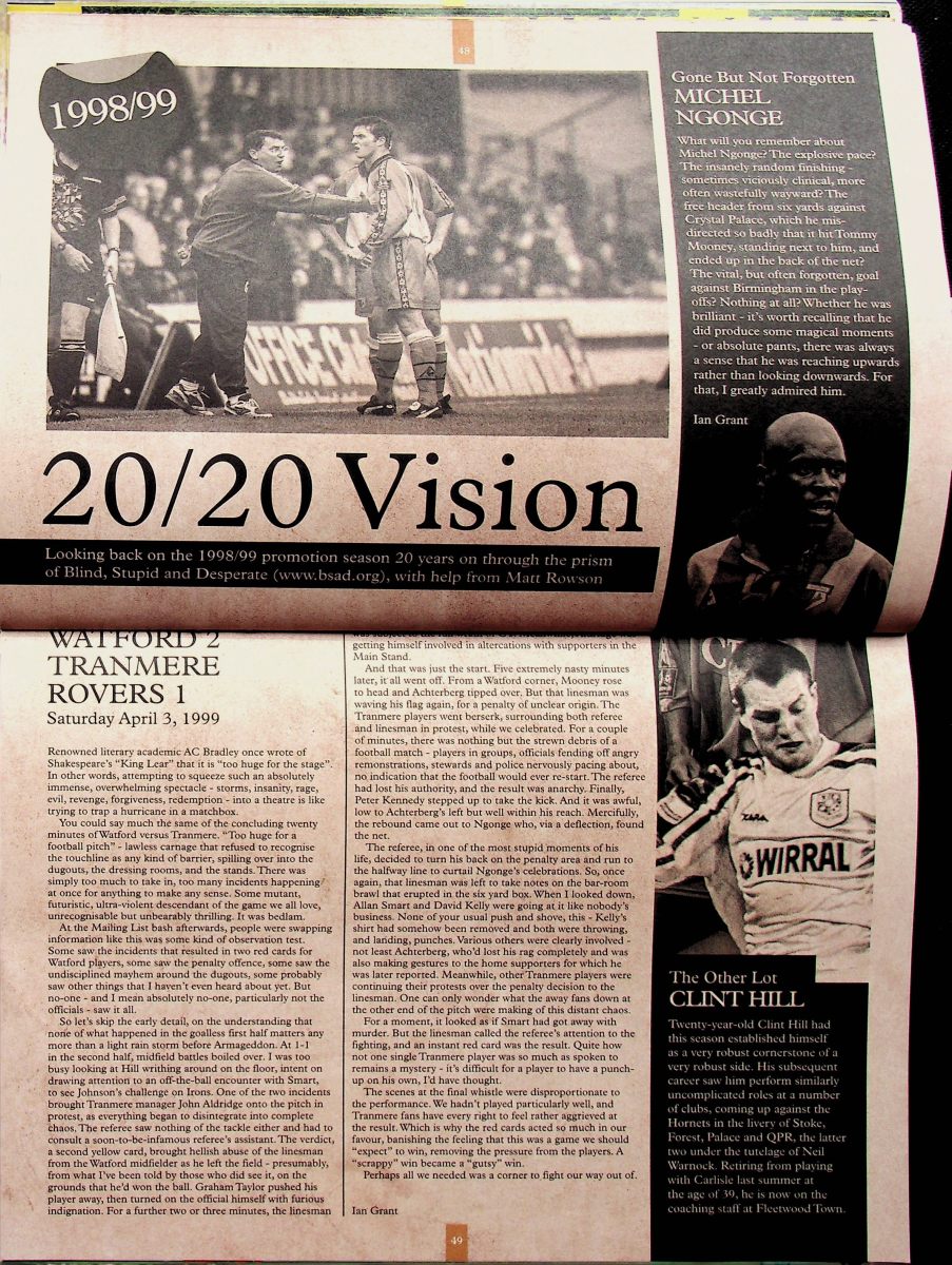 You could say much the same of the concluding twenty minutes of Watford versus Tranmere. “Too huge for a football pitch” – lawless carnage that refused to recognise the touchline as any kind of barrier, spilling over into the dugouts, the dressing rooms, and the stands.