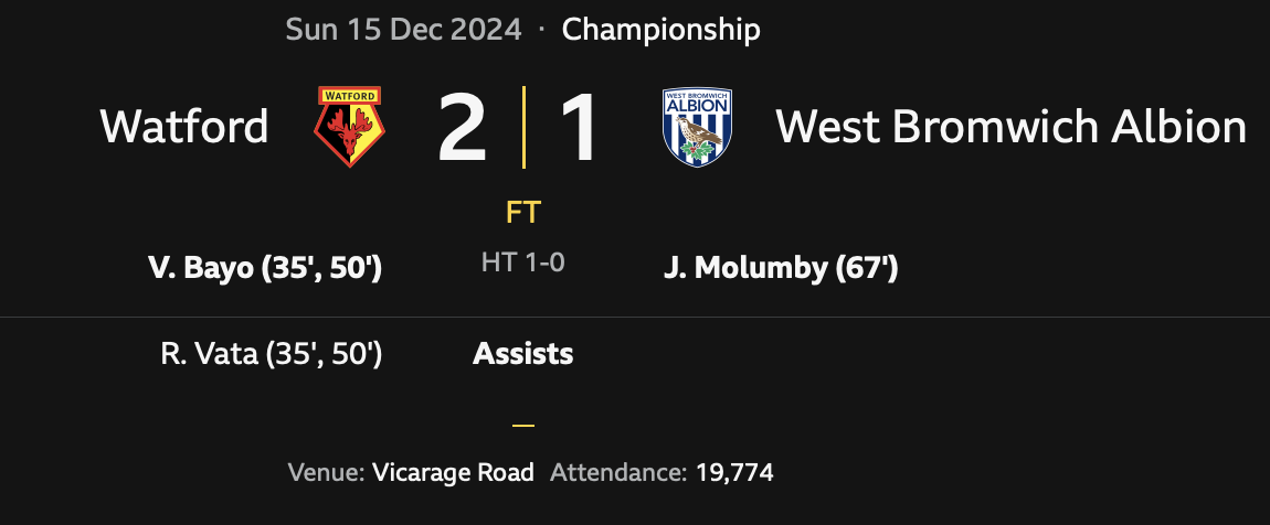 Watford Observer: RECAP: Watford 2 West Brom 1