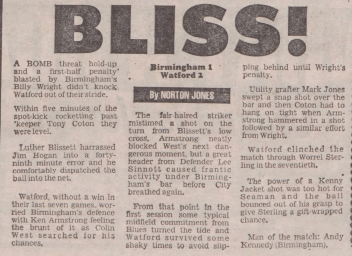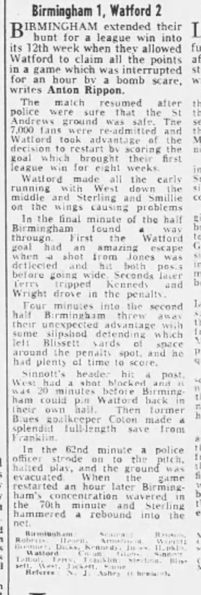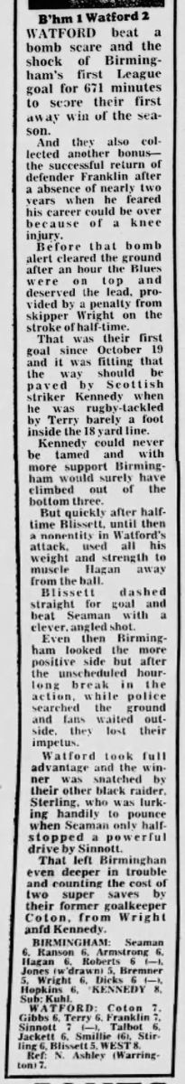 Due to an industrial dispute the paper wasn’t published this week. However as Watford didn’t have a game, it had been FA Cup weekend and they’d already been knocked out, no match reports were missed. The following week there was a page in the paper of ‘old’ stories that would have been in the paper but none concerned the football club.