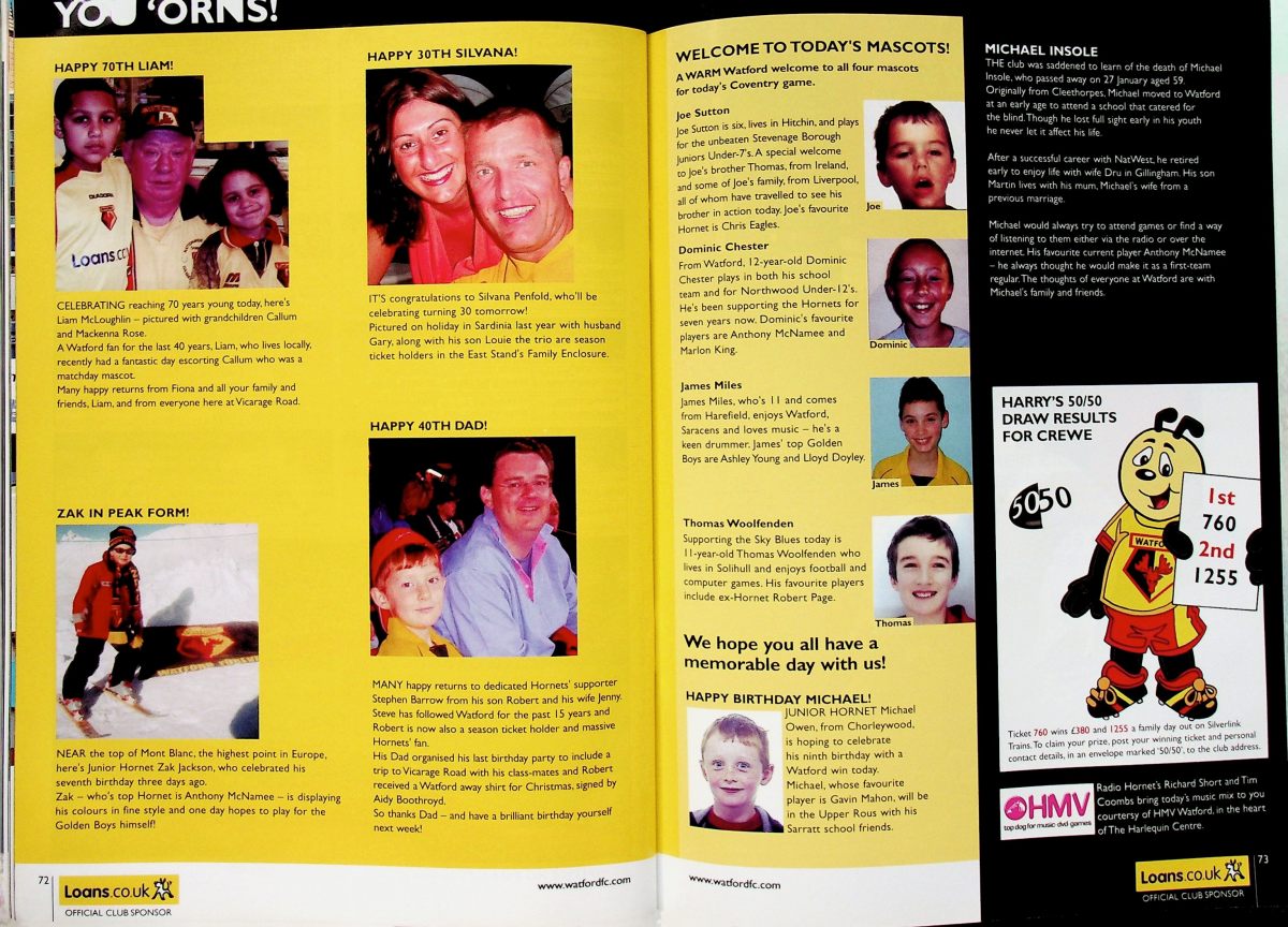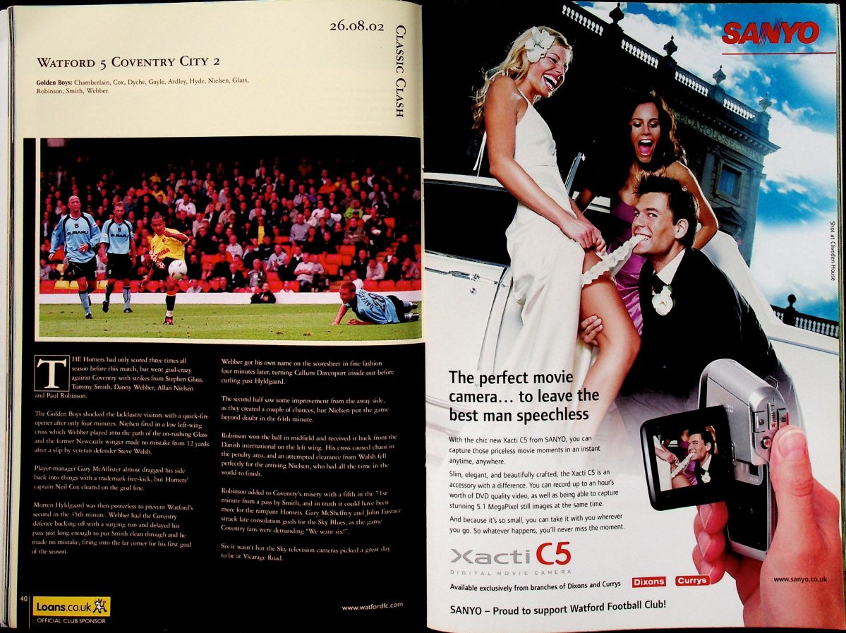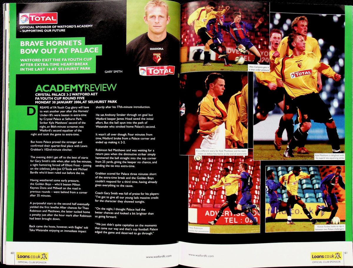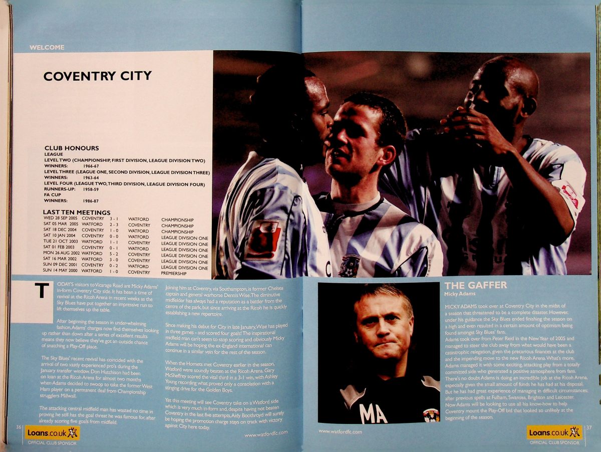 11th February 2006- Championship, Watford 4 Coventry City 0 Leave a Reply Ashley Young scored one and set up two more as Watford thrashed Coventry. Watford are the form side in the Championship and they continued their good run with a victory romp inspired by Ashley Young. He opened the scoring and set up goals for Marlon King and Darius Henderson before Jay DeMerit wrapped up the points. Eighteen goals in six games, six wins on the trot and the first sell-out for six seasons. Yet Watford’s manager Adrian Boothroyd says: “I don’t want anybody to get excited.” Who is he trying to kid? Eleven goals in three games, five wins in a row, third in the table and Sheffield United suddenly looking human and utterly catchable meant that the challenge provided by the arrival of Coventry City, on a good run themselves, was clear. Could Boothroyd keep his players’ feet on the ground, stave off complacency and follow up the excellent win at Bramall Lane with another three points? More questions being asked of this Watford team, and more answers being emphatically provided. Independent, 12 Feb 2006 Sunday Mirror, 12 Feb 2006 https://www.soccerbase.com/matches/results.sd?date=2006-02-11 https://www.11v11.com/league-tables/league-championship/11-february-2006/ Share this: Share on X (Opens in new window) X Share on Facebook (Opens in new window) Facebook