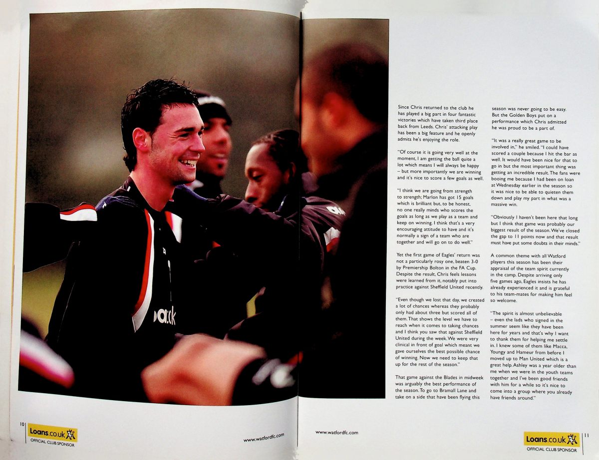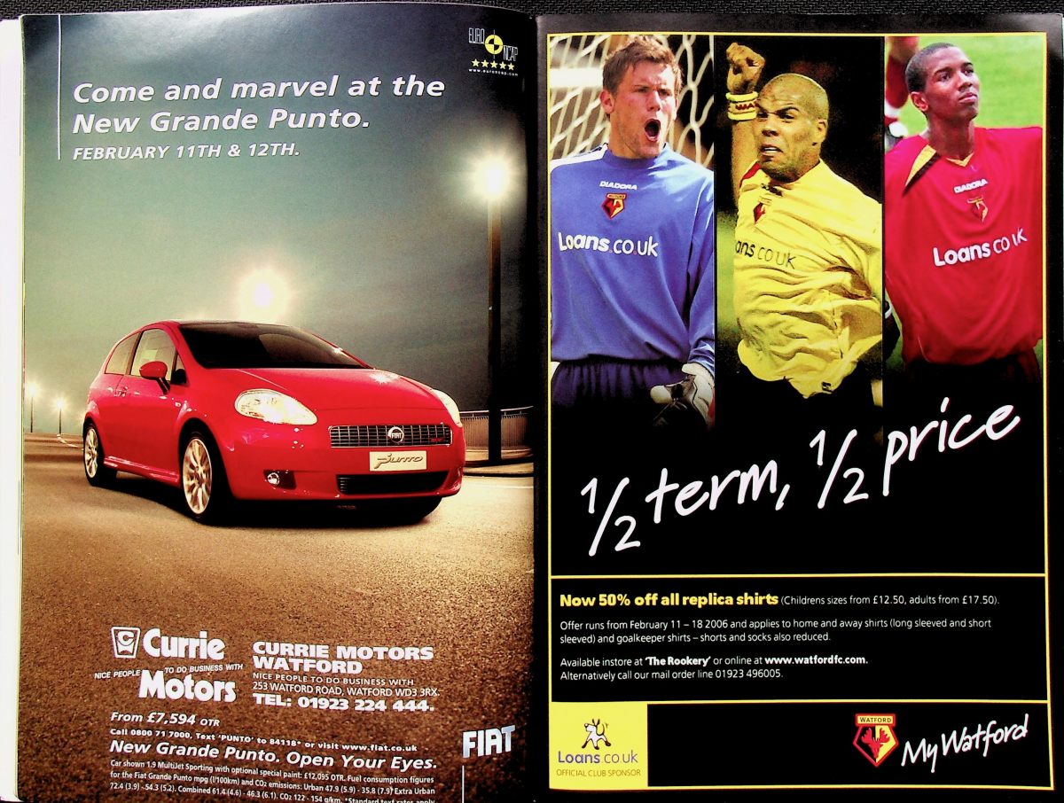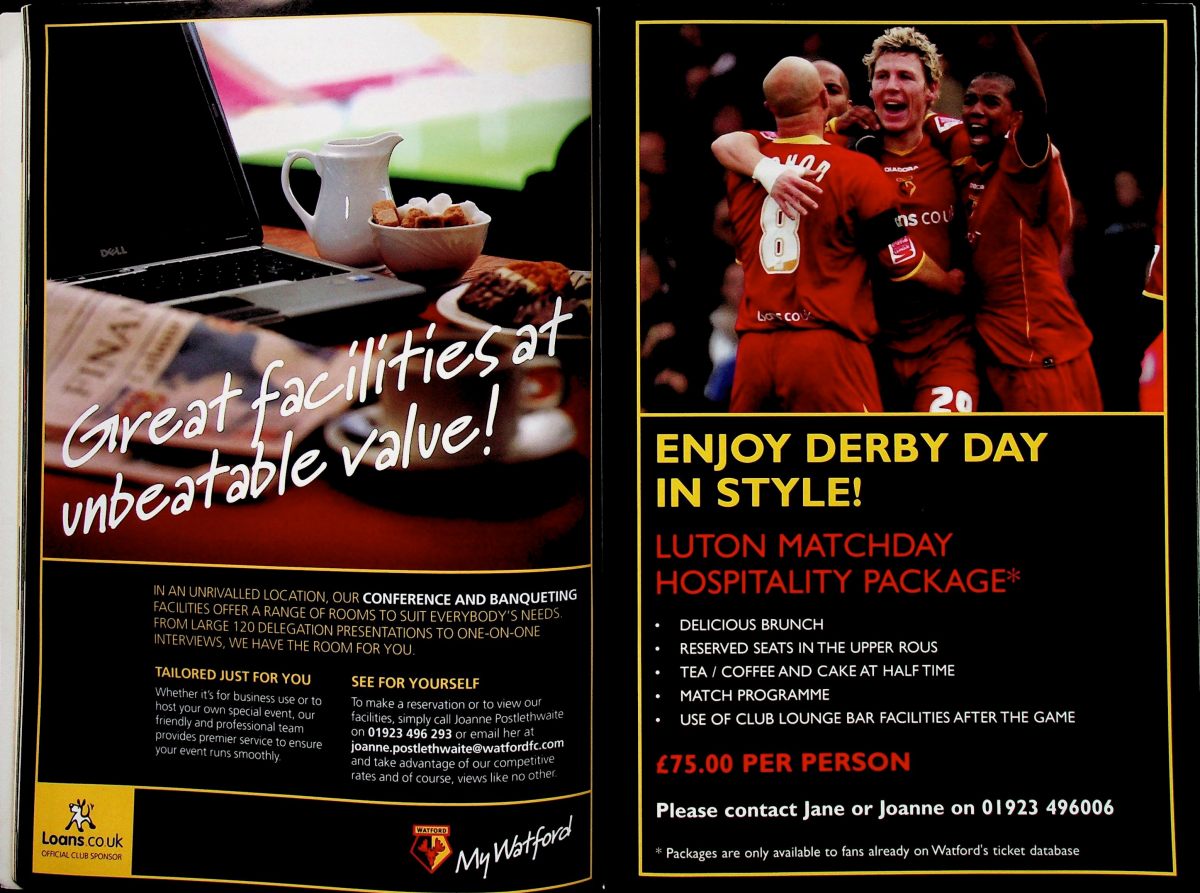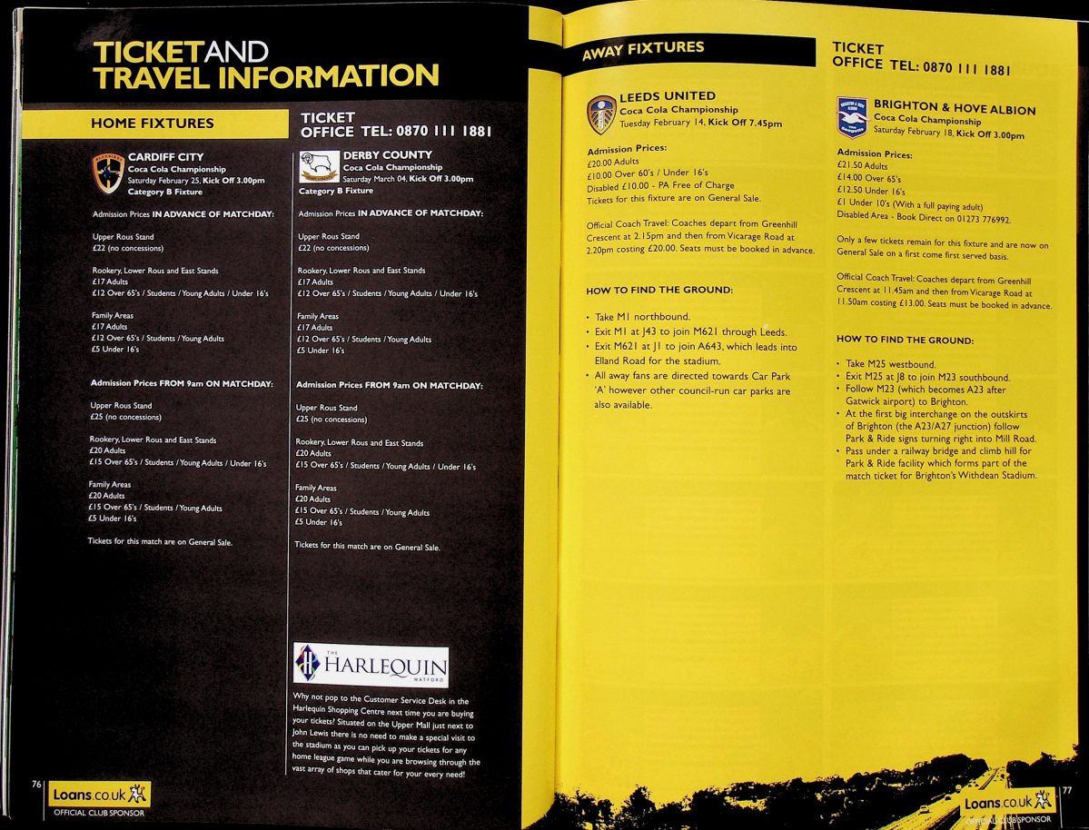 14th February 2004- New Division One, Watford 2 Preston North End 0 Leave a Reply https://watford.fcdb.info/index.php?page=matches Hameur Bouazza scored on his full debut to set up Watford’s victory against Preston at Vicarage Road. So, Preston then. And as I struggle to remember the game’s various events and talking points, one thing is clear above all. This was a good thing. Not just the performance (although it was surely one of the best of the season, if not the best) but for the number of factors that gave the more optimistic supporter something to smile about. Taken from programme on 6th August 2005- Championship, Watford 1 Preston North End 2 Share this: Share on X (Opens in new window) X Share on Facebook (Opens in new window) Facebook