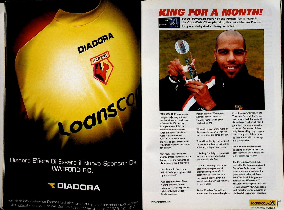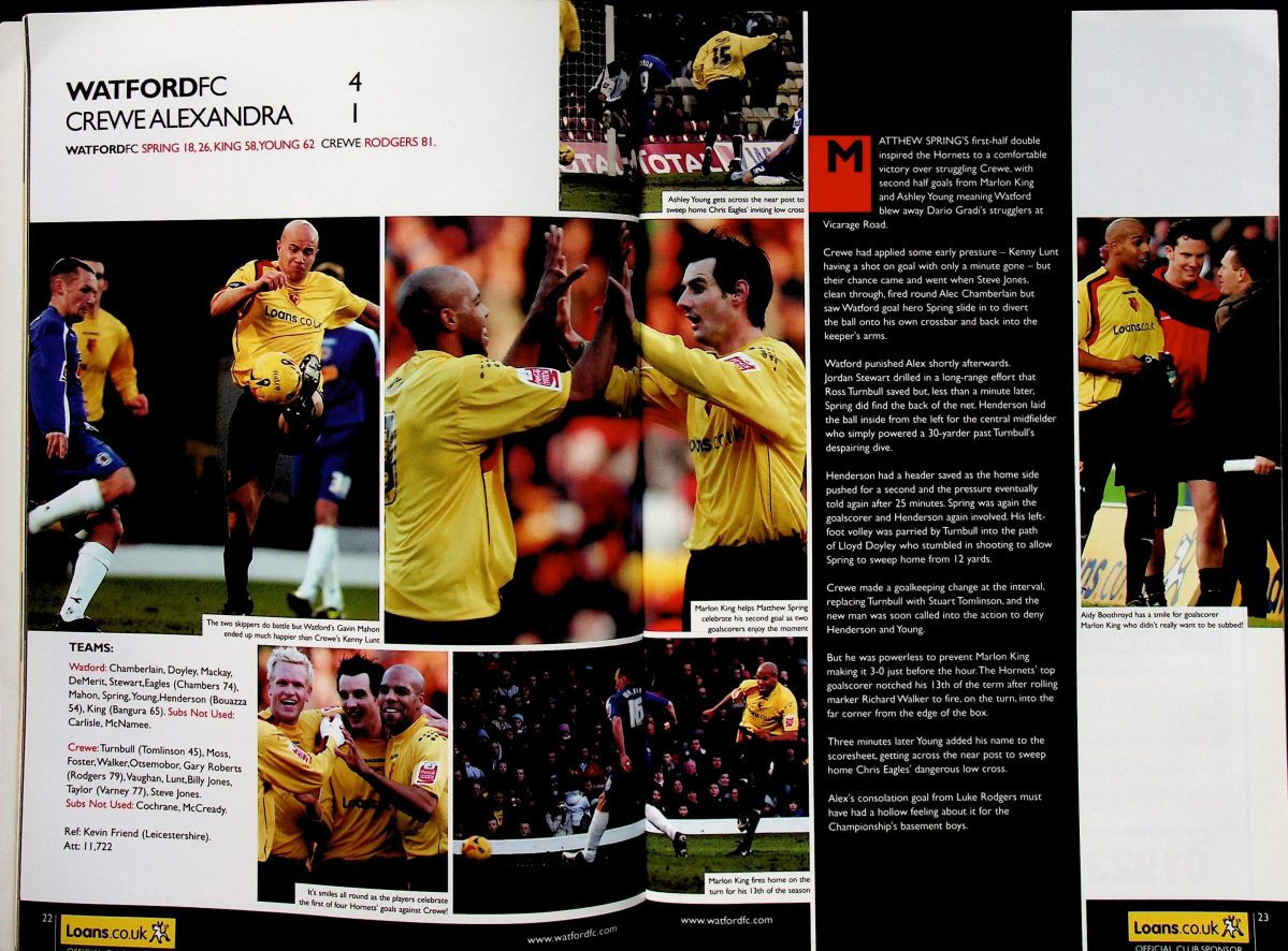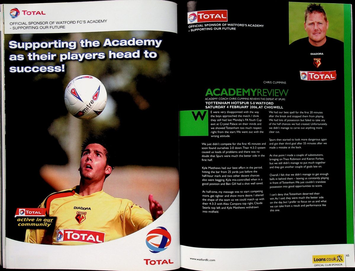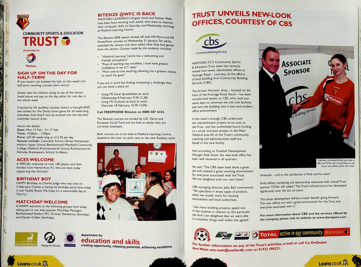 14th February 2004- New Division One, Watford 2 Preston North End 0 Leave a Reply https://watford.fcdb.info/index.php?page=matches Hameur Bouazza scored on his full debut to set up Watford’s victory against Preston at Vicarage Road. So, Preston then. And as I struggle to remember the game’s various events and talking points, one thing is clear above all. This was a good thing. Not just the performance (although it was surely one of the best of the season, if not the best) but for the number of factors that gave the more optimistic supporter something to smile about. Taken from programme on 6th August 2005- Championship, Watford 1 Preston North End 2 Share this: Share on X (Opens in new window) X Share on Facebook (Opens in new window) Facebook