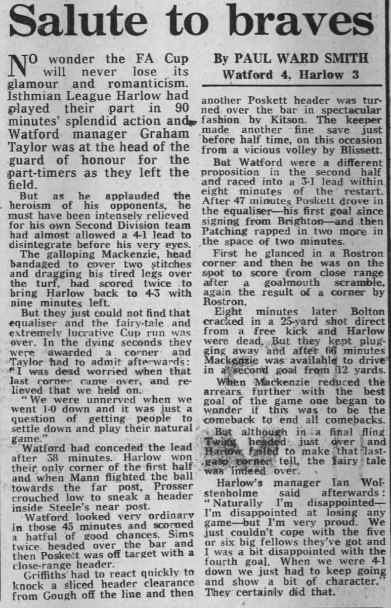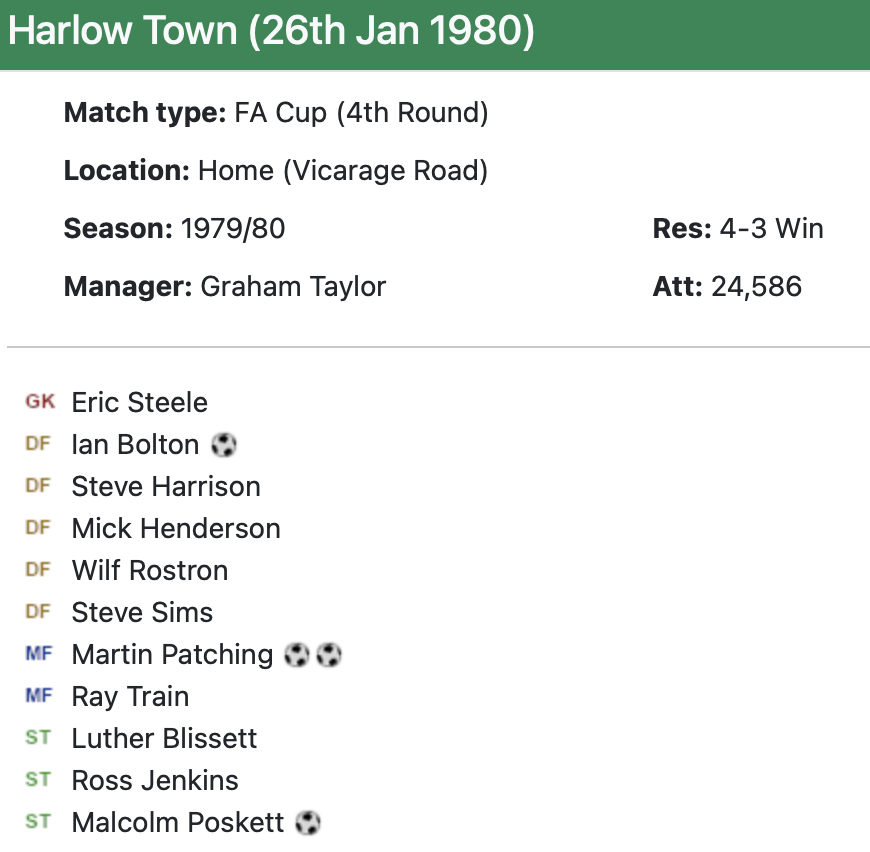 Taken from the programme on 9th February 1980-Division Two, Watford 2 Chelsea 3