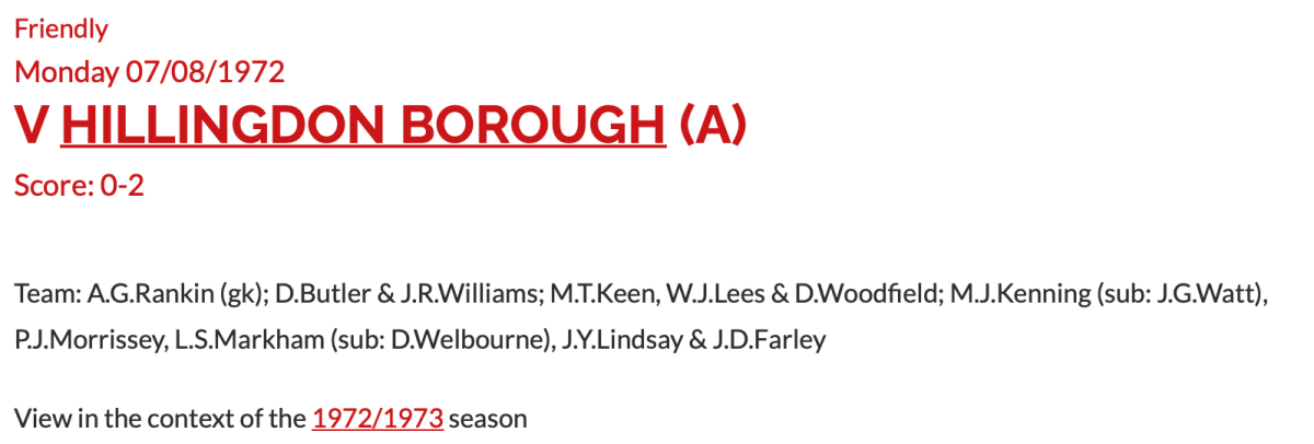 7th August 1972- Friendly, Hillingdon Borough 2 Watford 0 https://www.watfordfcarchive.co.uk/fixture/1972-08-07 Watford Observer match report Share this: Share on X (Opens in new window) X Share on Facebook (Opens in new window) Facebook