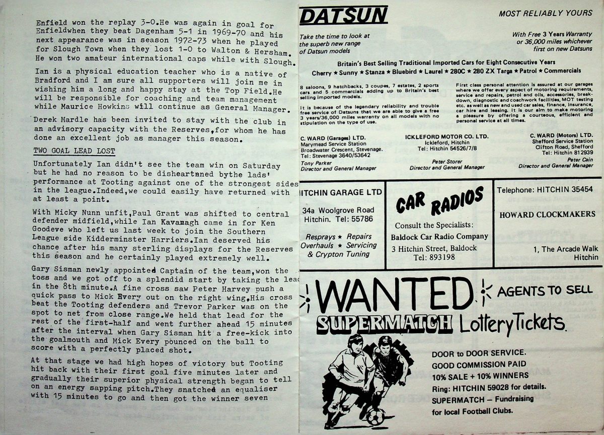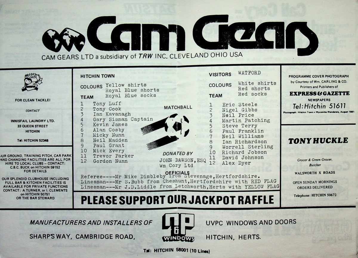 18th August 1982- Friendly, Hitchin Town 2 Watford Reserves 2 Leave a Reply Watford Observer match report Share this: Click to share on X (Opens in new window) X Click to share on Facebook (Opens in new window) Facebook