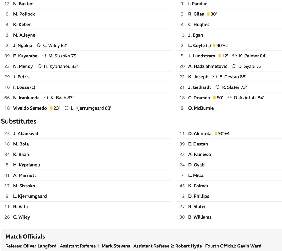 The game was called off just 23 minutes before kick off. The Watford players came over to the away fans to tell them that the game was off before any announcement had been made in the ground. The news then started to appear on social media before finally confirmation was given in the stadium that the match was postponed.