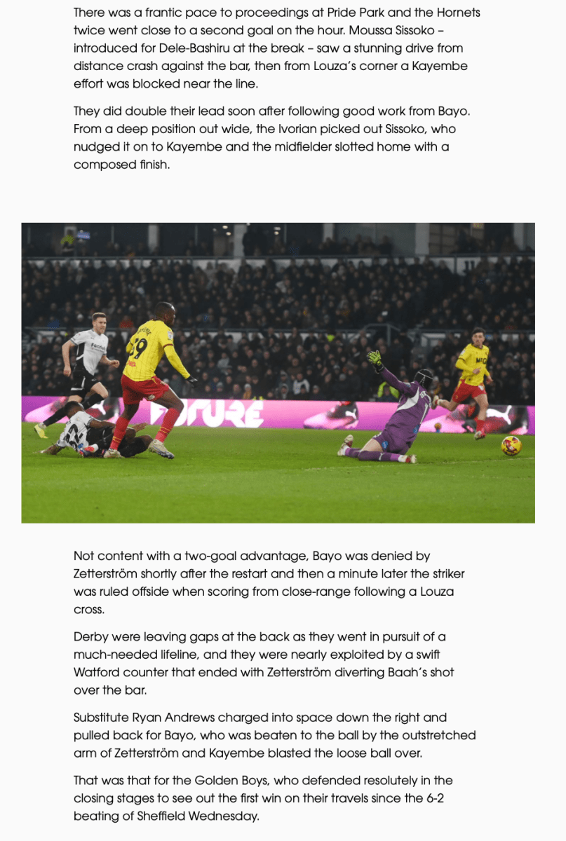 Watford Observer: RECAP: Derby 0 Watford 2