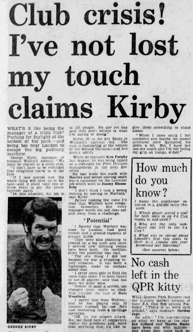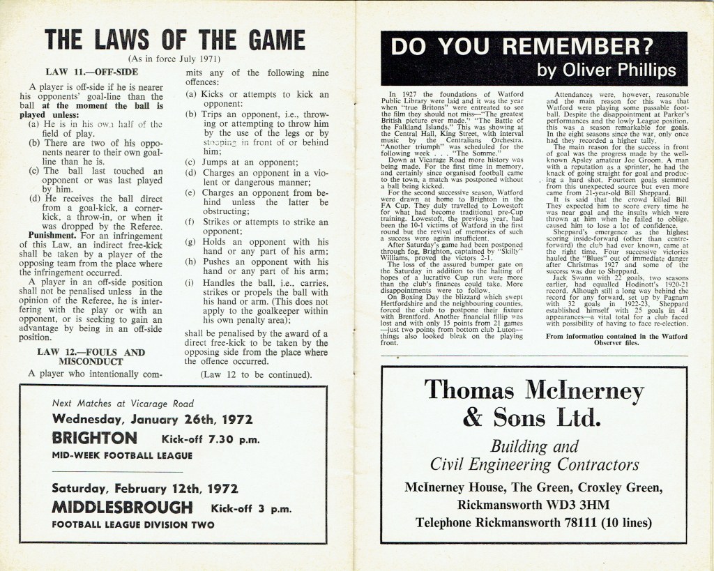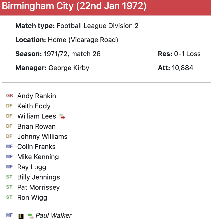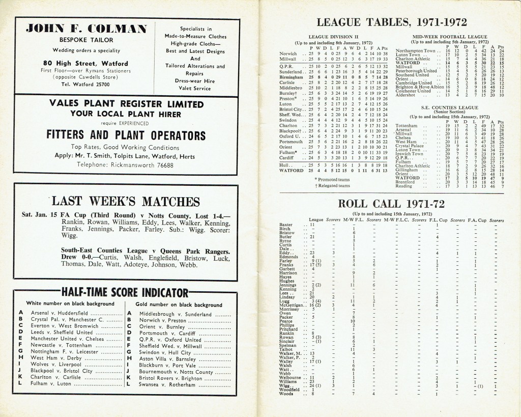 22nd January 1972- Division Two, Watford 0 Birmingham City 1 Leave a Reply http://watford.fcdb.info/index.php?page=matches Evening Standard, 22 Jan 1972 Sunday Mirror, 23 Jan 1972 Sunday People,23 Jan 1972 Watford Observer match report Share this: Click to share on X (Opens in new window) X Click to share on Facebook (Opens in new window) Facebook