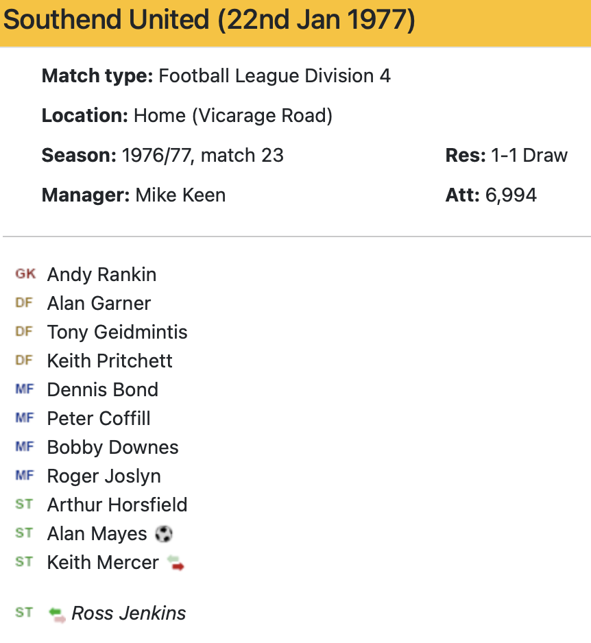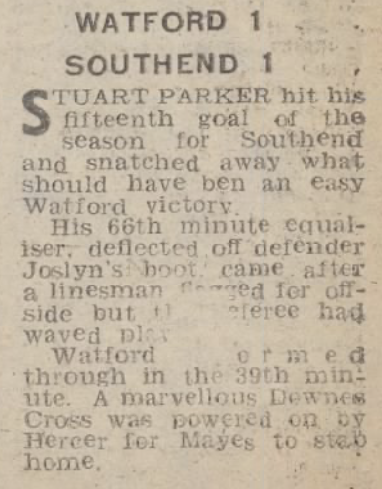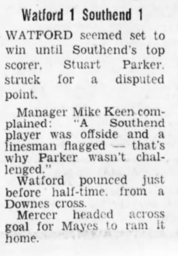 22nd January 1977- Division Four, Watford 1 Southend United 1 Leave a Reply https://watford.fcdb.info/index.php?page=matches Sunday Mirror, 23 Jan 1977 Sunday People, 23 January 1977 Watford Observer match report Share this: Click to share on X (Opens in new window) X Click to share on Facebook (Opens in new window) Facebook