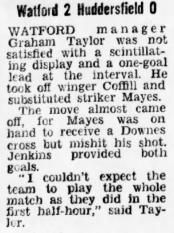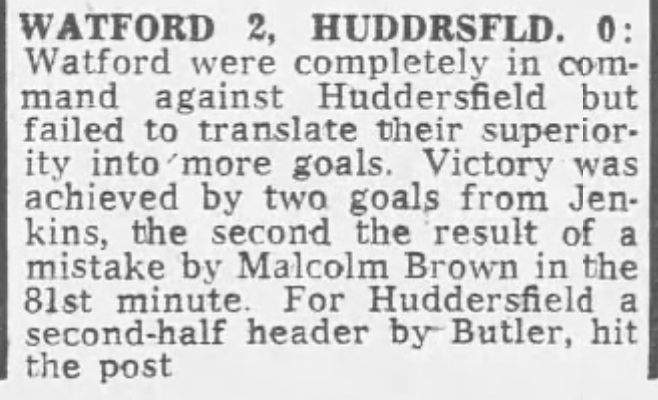 10th September 1977-Division Four, Watford 2 Huddersfield Town 0 Leave a Reply http://watford.fcdb.info?id=3188 Yorkshire Sports, 10 Sep 1977 Sunday People, 11 Sep 1977 Sunday Telegraph, 11 Sep 1977 Watford Observer match report Sunday People Share this: Share on X (Opens in new window) X Share on Facebook (Opens in new window) Facebook
