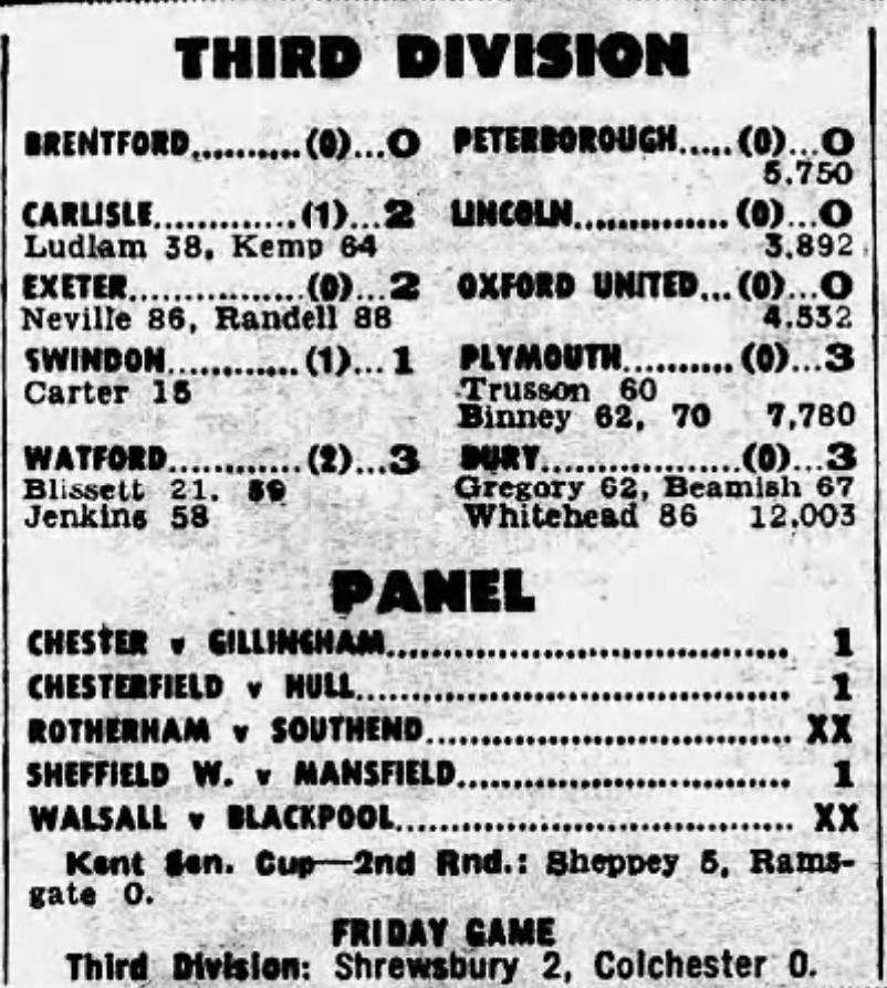 13th January 1978- Division Four, Watford 1 Stockport County 0 Leave a Reply http://watford.fcdb.info/index.php?page=matches Daily Telegraph, 14 Jan 1978 Daily Mirror, 13 Jan 1978 Watford Observer match report https://www.soccerbase.com/matches/results.sd?date=1978-01-13 https://www.11v11.com/league-tables/league-division-four/13-january-1978/ Share this: Share on X (Opens in new window) X Share on Facebook (Opens in new window) Facebook