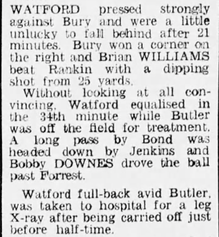 5th October 1974-Division Three, Watford 2 Bury 1 Leave a Reply http://watford.fcdb.info?id=3041 Evening Standard, 5 Oct 1974 Sunday People, 8 Oct 1974 Watford Observer match report Taken from 22 Aug 2009 Watford v Blackpool programme Share this: Click to share on X (Opens in new window) X Click to share on Facebook (Opens in new window) Facebook