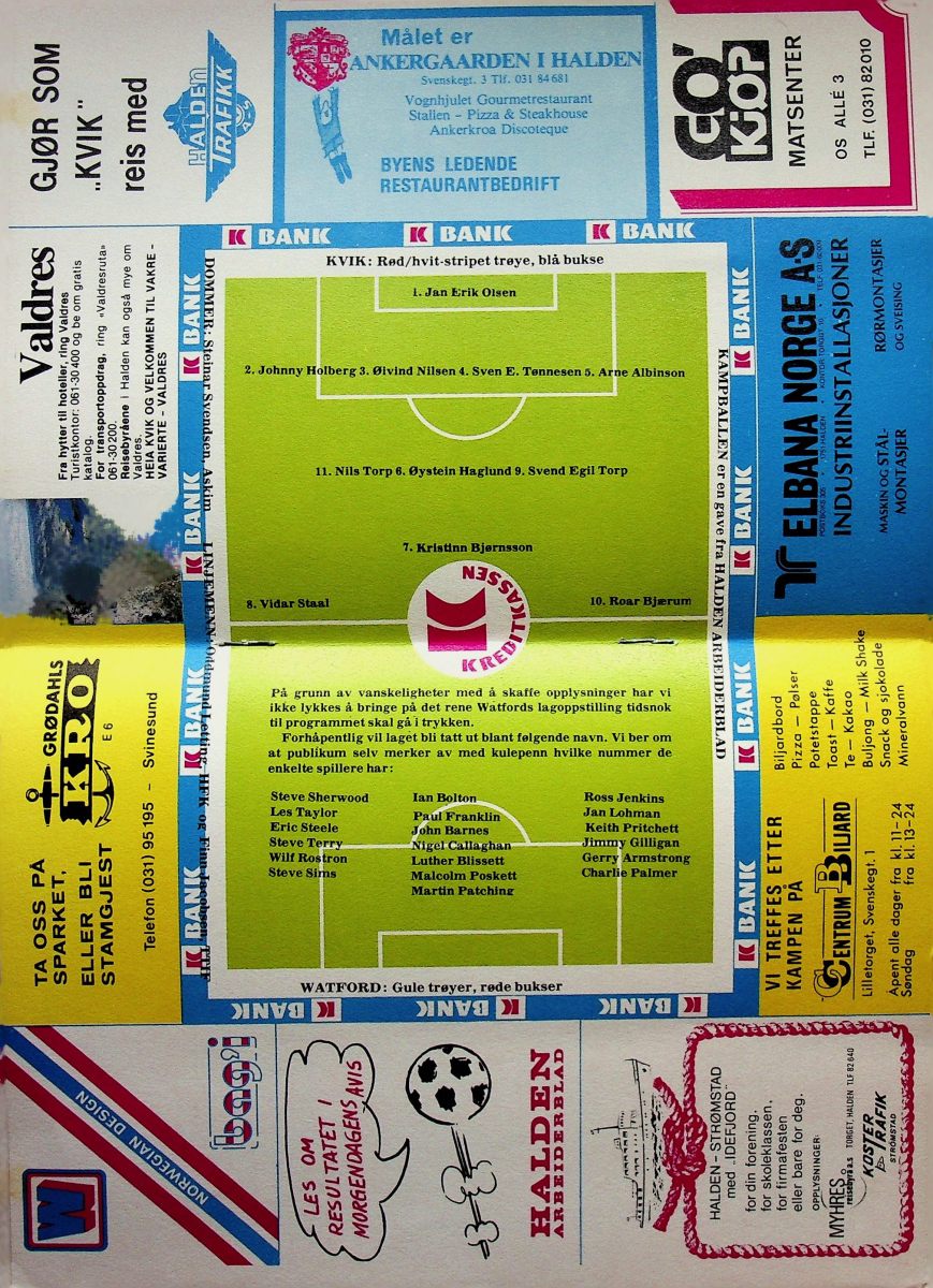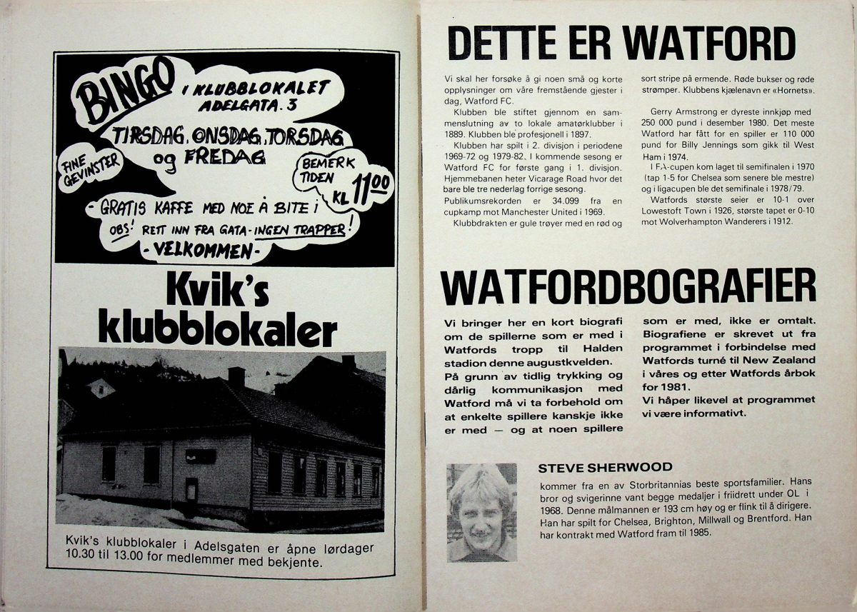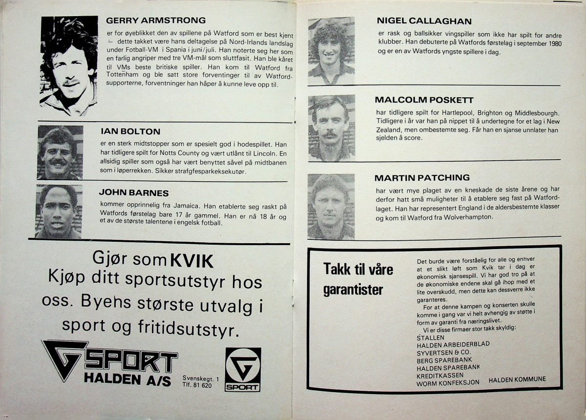 4th August 1982- Friendly, Kvik 0 Watford 4 Programme images courtesy of Matt Hall Watford Observer Match Report Evening Standard, 5 Aug 1982 Share this: Share on X (Opens in new window) X Share on Facebook (Opens in new window) Facebook