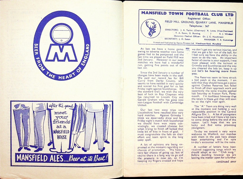4th October 1965- Division Three, Mansfield Town 2 Watford 2 The date on the programme is incorrect. http://watford.fcdb.info/index.php?page=matches Daily Mirror, 5 Oct 1965 Daily Telegraph, 5 Oct 1965 Watford Observer match report https://www.soccerbase.com/matches/results.sd?date=1965-10-04 https://www.11v11.com/league-tables/league-division-three/04-october-1965/ Share this: Share on X (Opens in new window) X Share on Facebook (Opens in new window) Facebook