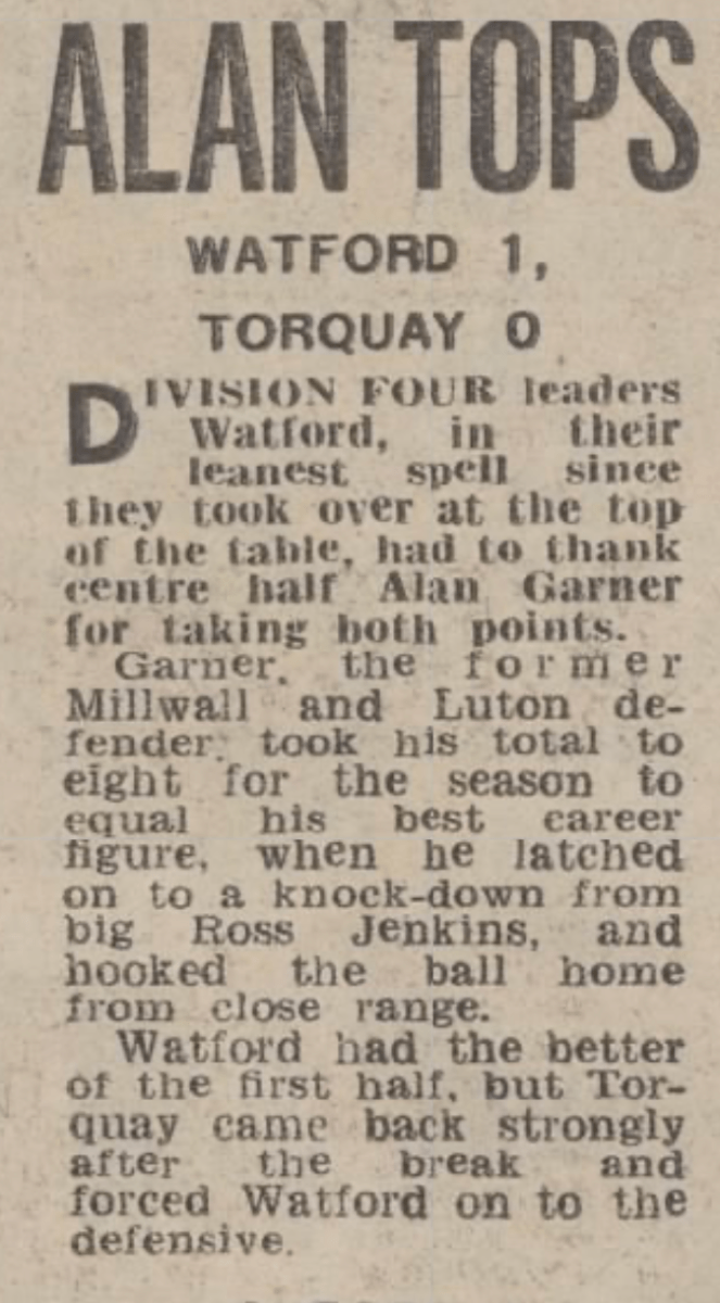 25th March 1978-Division Four, Watford 1 Torquay United 0 Leave a Reply http://watford.fcdb.info?id=3223 Sunday People, 26 Mar 1978 Sunday Mirror, 26 Mar 1978 Share this: Click to share on X (Opens in new window) X Click to share on Facebook (Opens in new window) Facebook