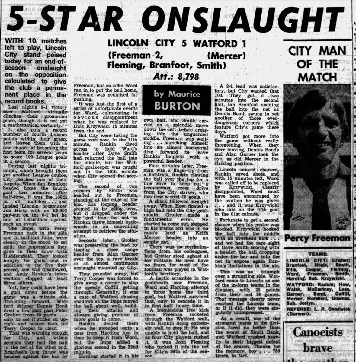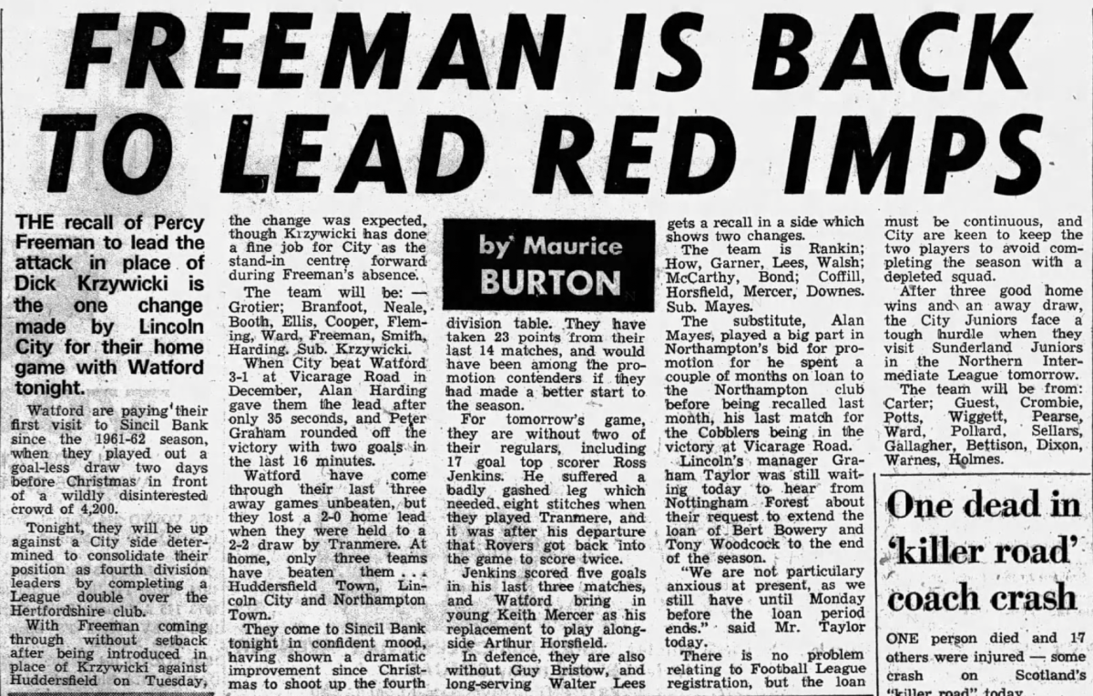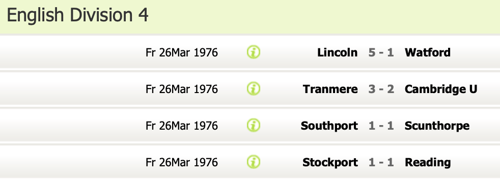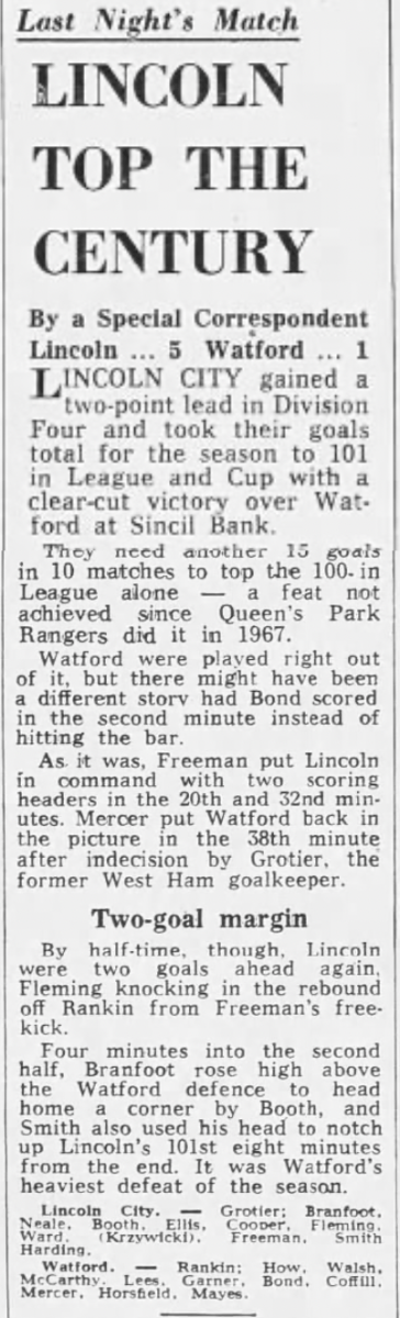 26th March 1976- Division Four, Lincoln City 5 Watford 1 Lincolnshire Echo, 26 Mar 1976 https://watford.fcdb.info/index.php?page=matches Daily Telegraph, 27 Mar 1976 Lincolnshire Echo, 27 Mar 1976 https://www.soccerbase.com/matches/results.sd?date=1976-03-26 https://www.11v11.com/league-tables/league-division-four/26-march-1976/ Share this: Share on X (Opens in new window) X Share on Facebook (Opens in new window) Facebook
