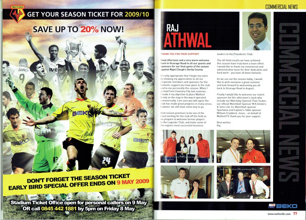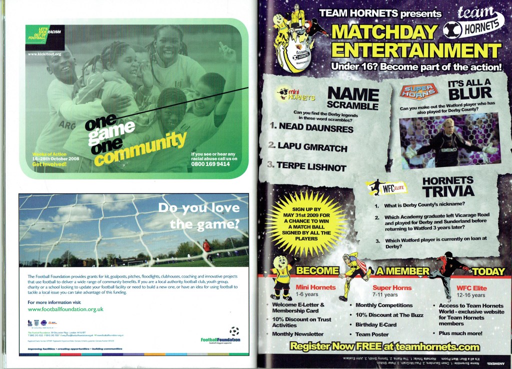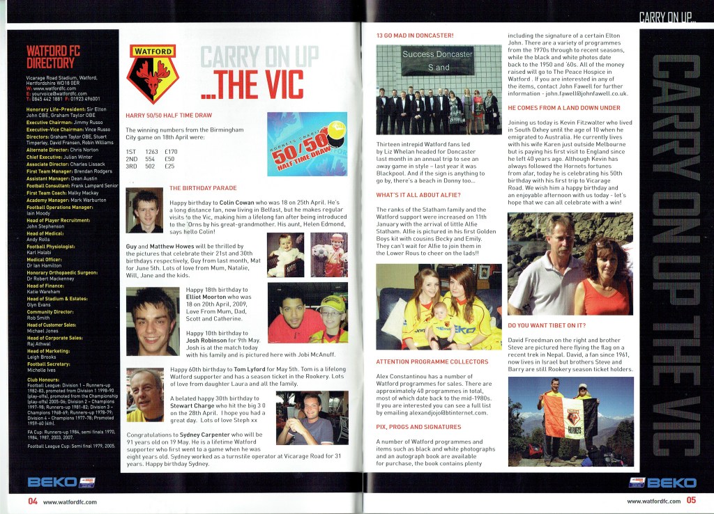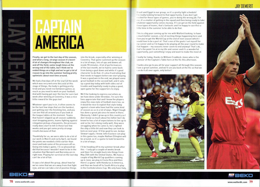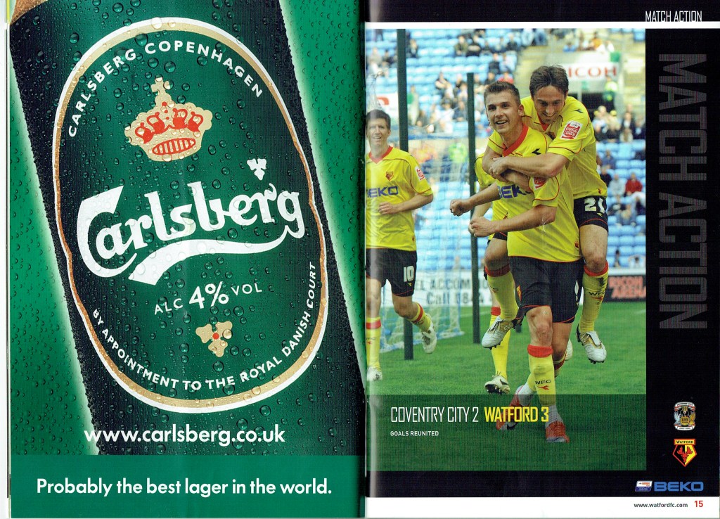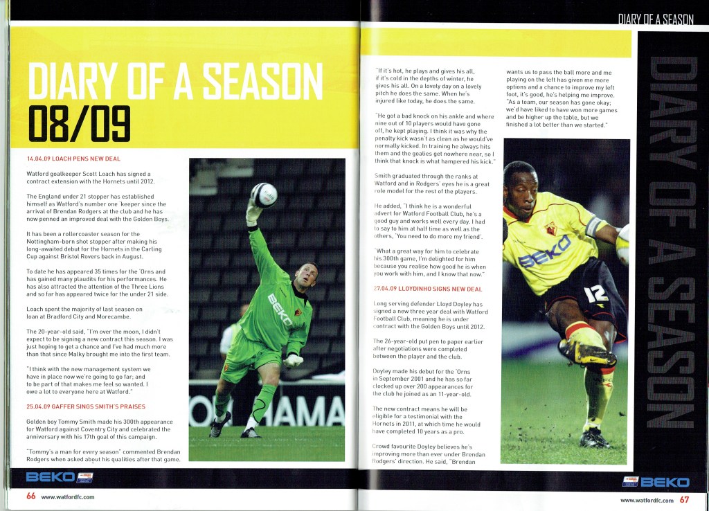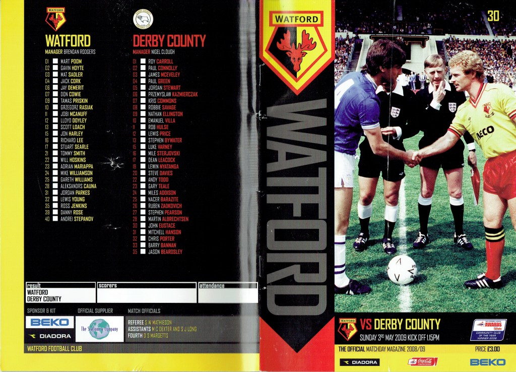 Brendan Rodgers last programme notes. This was the game where John Eustace, a Watford player but on loan to Derby, played against us and scored.