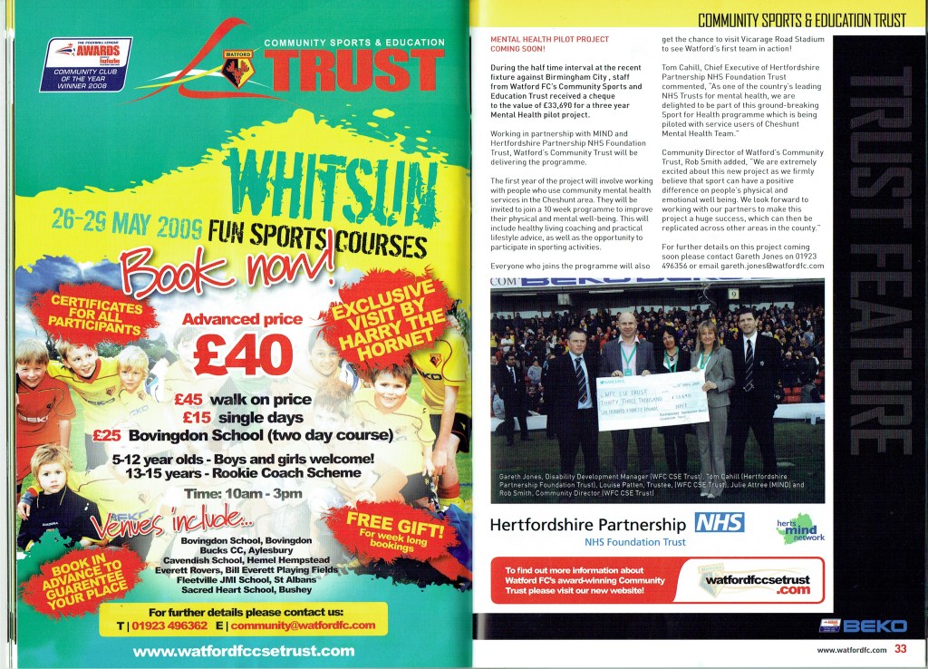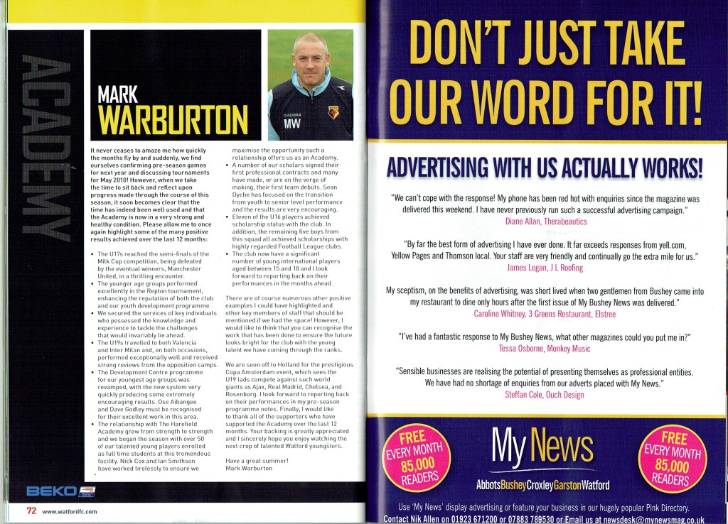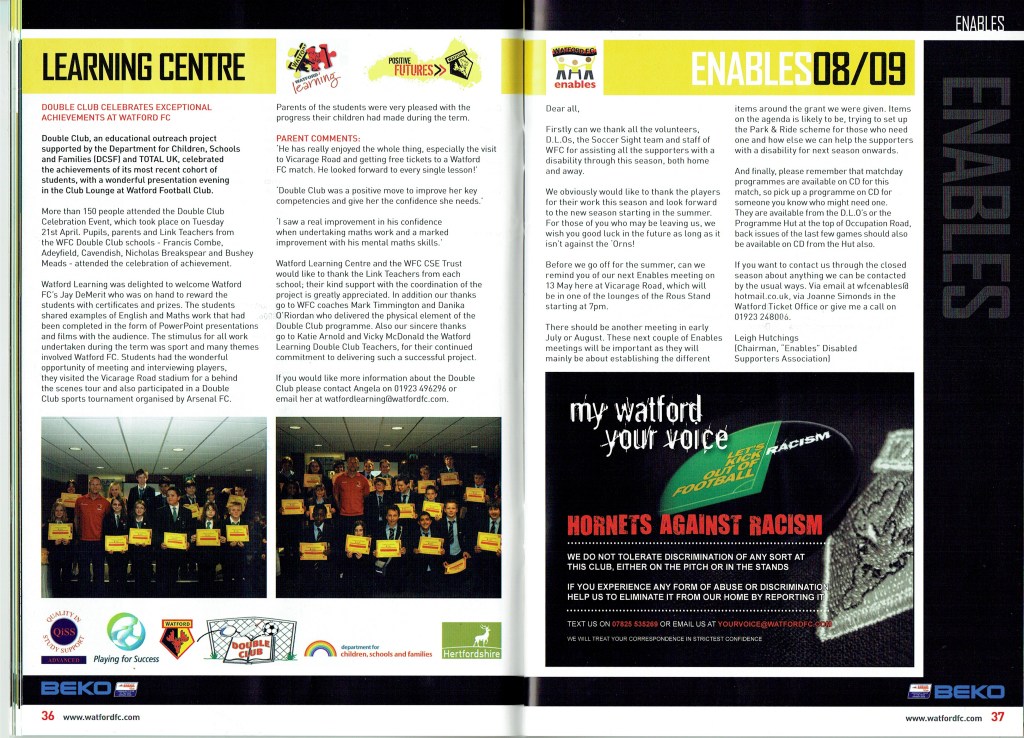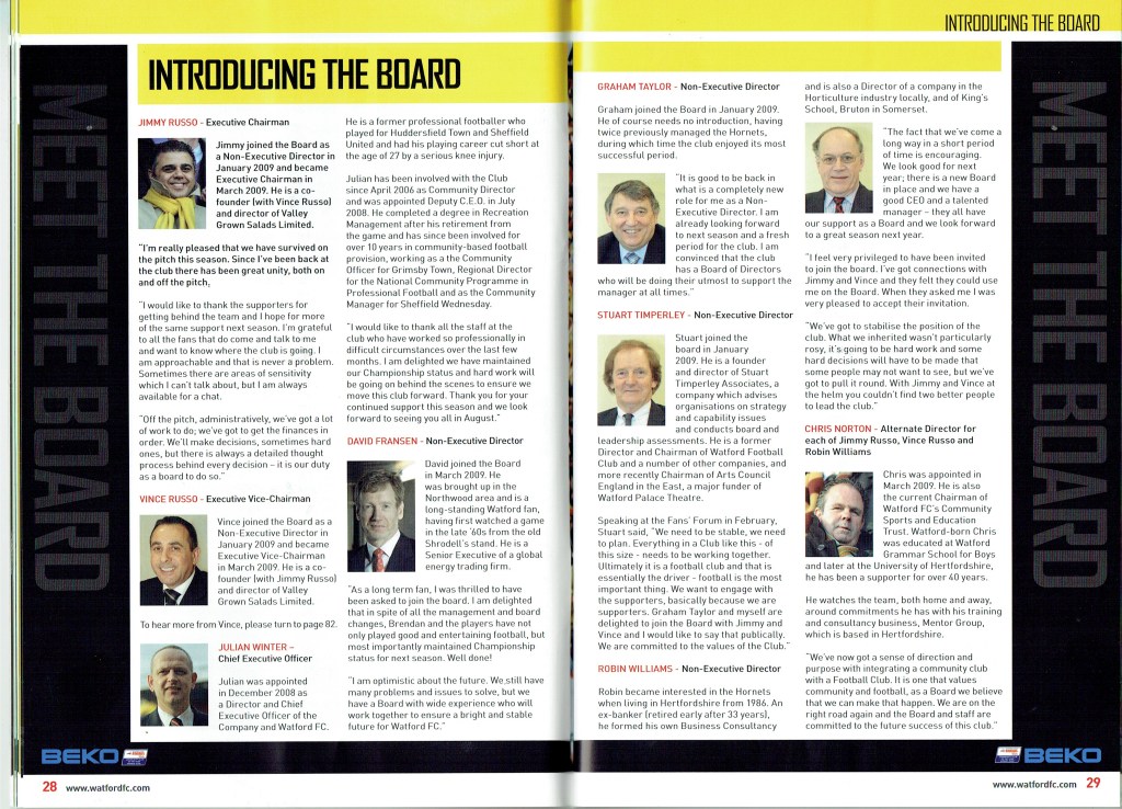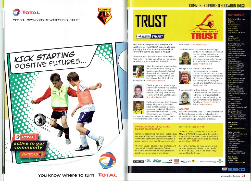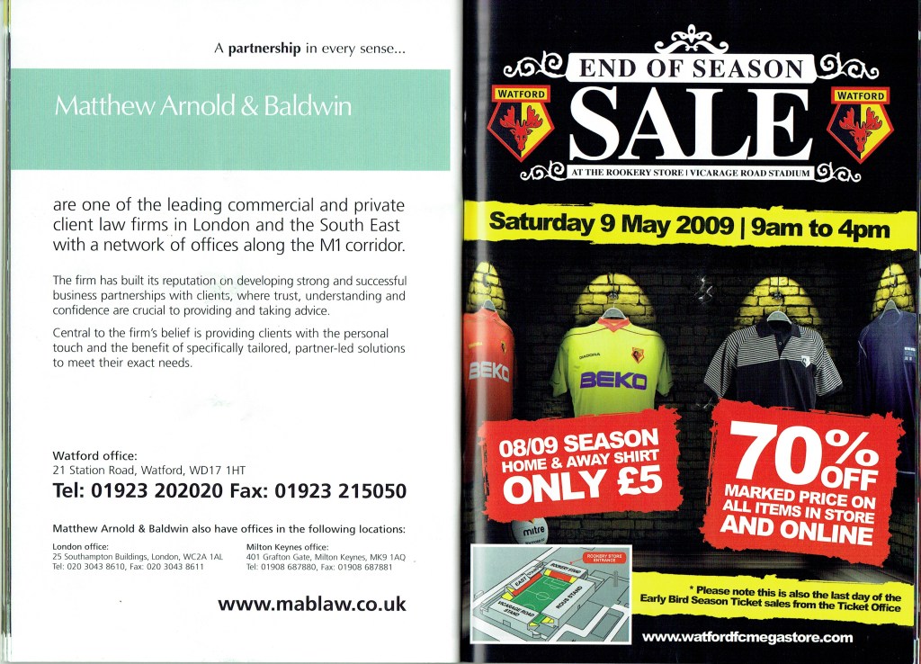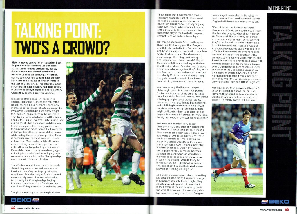 Brendan Rodgers last programme notes. This was the game where John Eustace, a Watford player but on loan to Derby, played against us and scored.