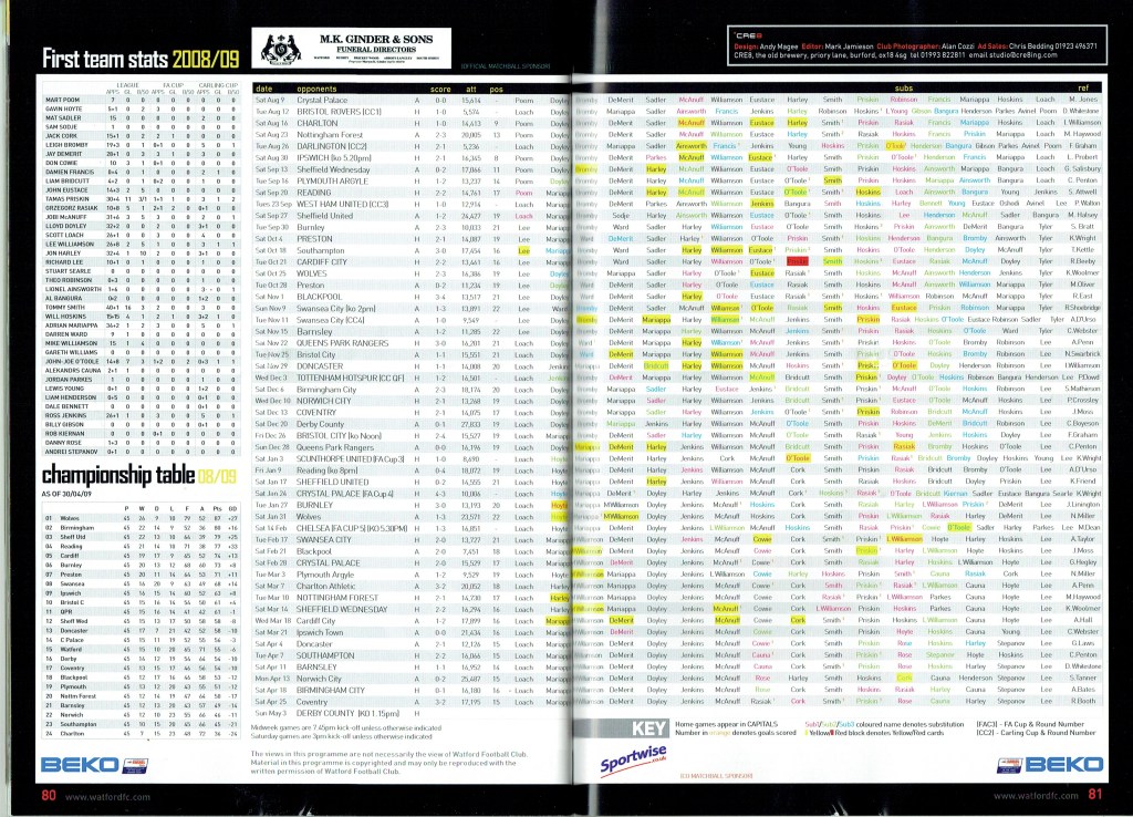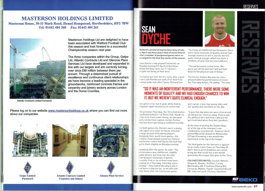 Gavin Mahon made his final Watford appearance in this game over three and a half years after his penultimate one. His last competitive appearance was on 1st Dec 2007 in the 2-1 home defeat by Burnley. He then joined QPR, initially on loan, and played over 50 times for them. They released him at the end of the 2010/11 season. As he was without a club Sean Dyche allowed Mahon to train with us during the 2011/12 pre-season and he came on during this game as a second half substitute. He eventually signed for Notts County.