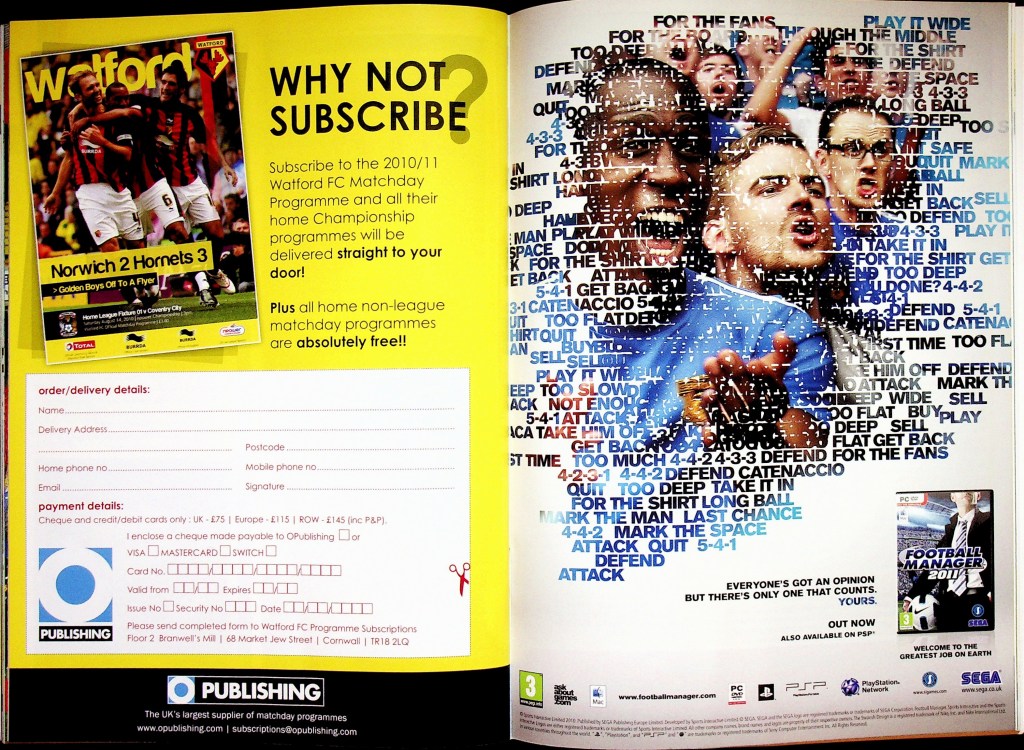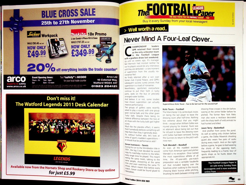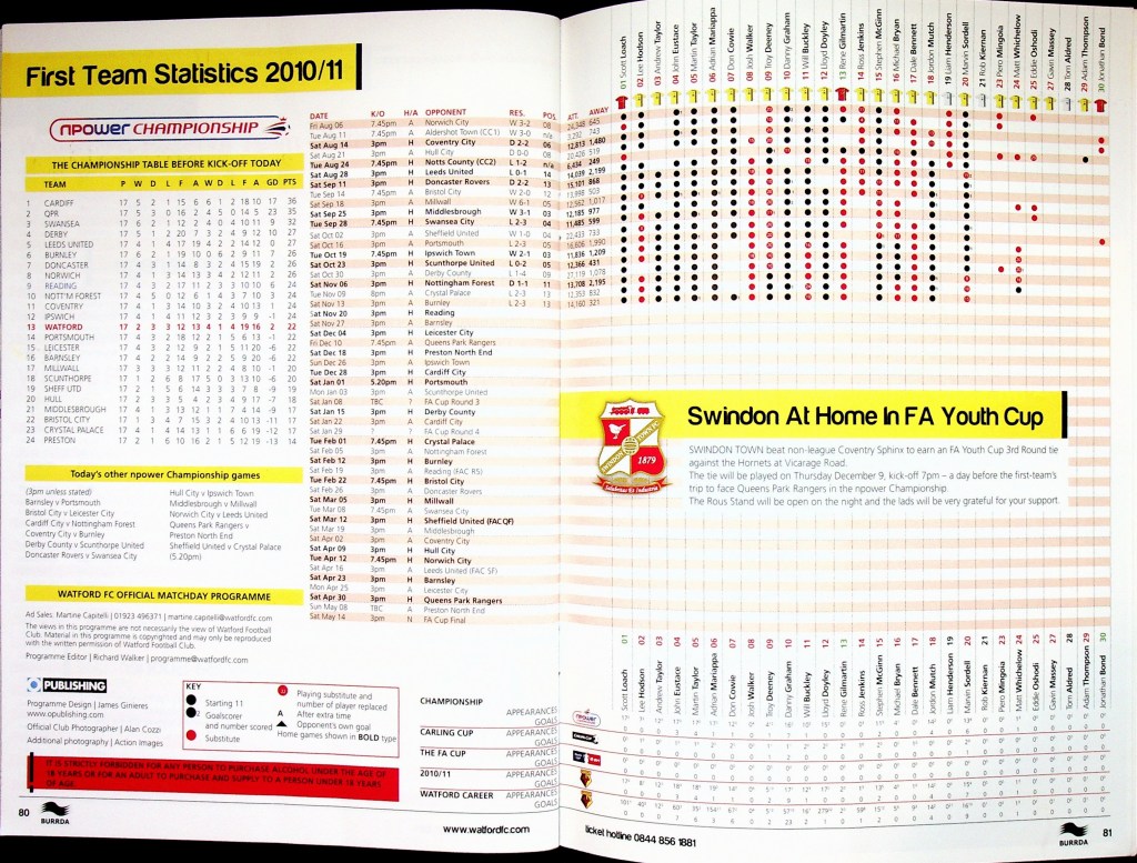 20th November 2010- Championship, Watford 1 Reading 1 Leave a Reply There was much about Watford’s performance that was concerning but nothing terribly surprising, and nothing for which a clear solution presents itself. We knew that we were going into the season with a young side that was going to be dependent on senior players; we’ve already seen, in Cowie’s absence, the impact that removing one of those cogs can have on the whole shape of the side. More of the same today; Jordon Mutch and Stephen McGinn both had reasonable games in the middle of the park but the whole side missed the steadying influence, the aggression, the option, the foot-on-the-ball of John Eustace in the centre. Ross Jenkins might have reminded us of what he best offers, an option not really suited to pairing with the skipper for whom he’d have been the most obvious replacement but for his ankle injury. http://watford.fcdb.info?s=39599&id=4936 https://www.soccerbase.com/matches/results.sd?date=2010-11-20 https://www.11v11.com/league-tables/league-championship/20-november-2010/ Share this: Click to share on X (Opens in new window) X Click to share on Facebook (Opens in new window) Facebook