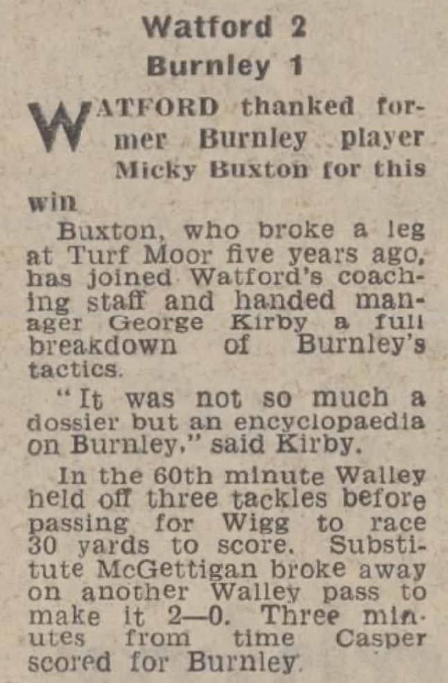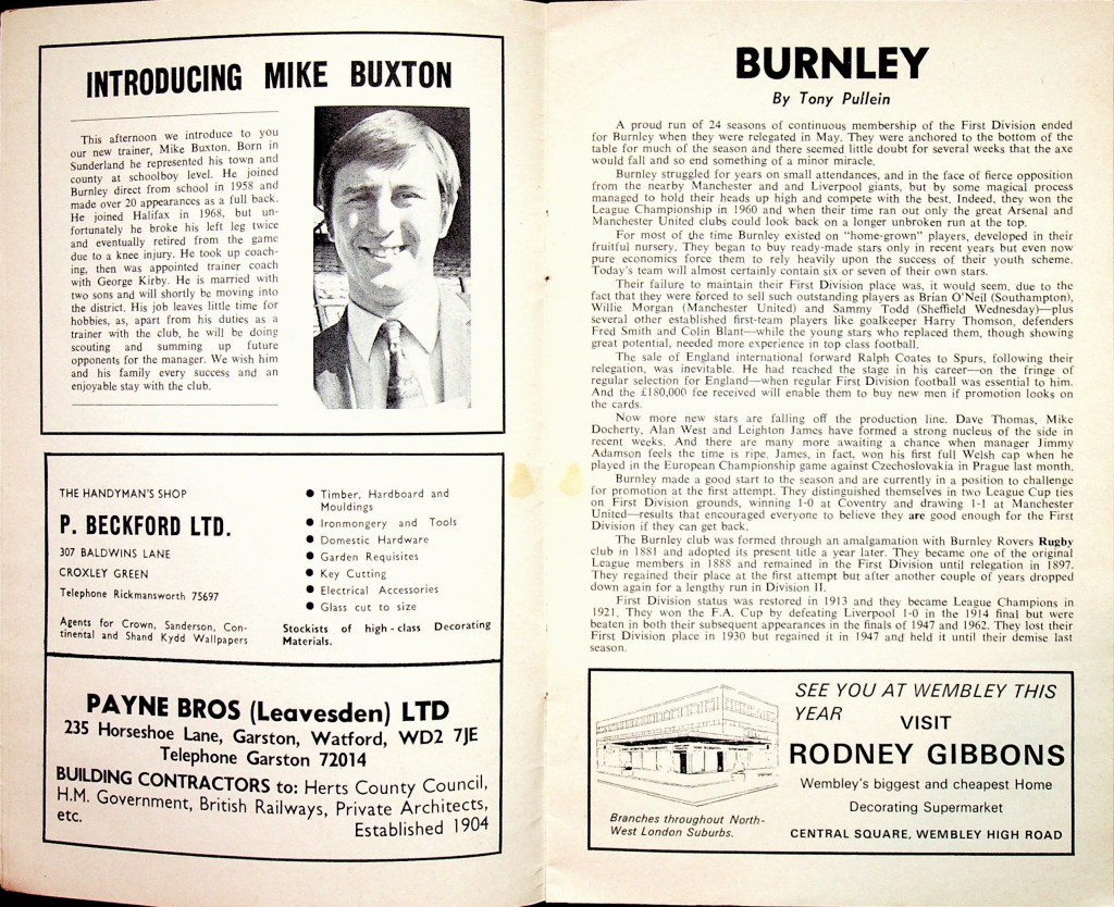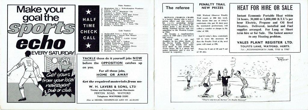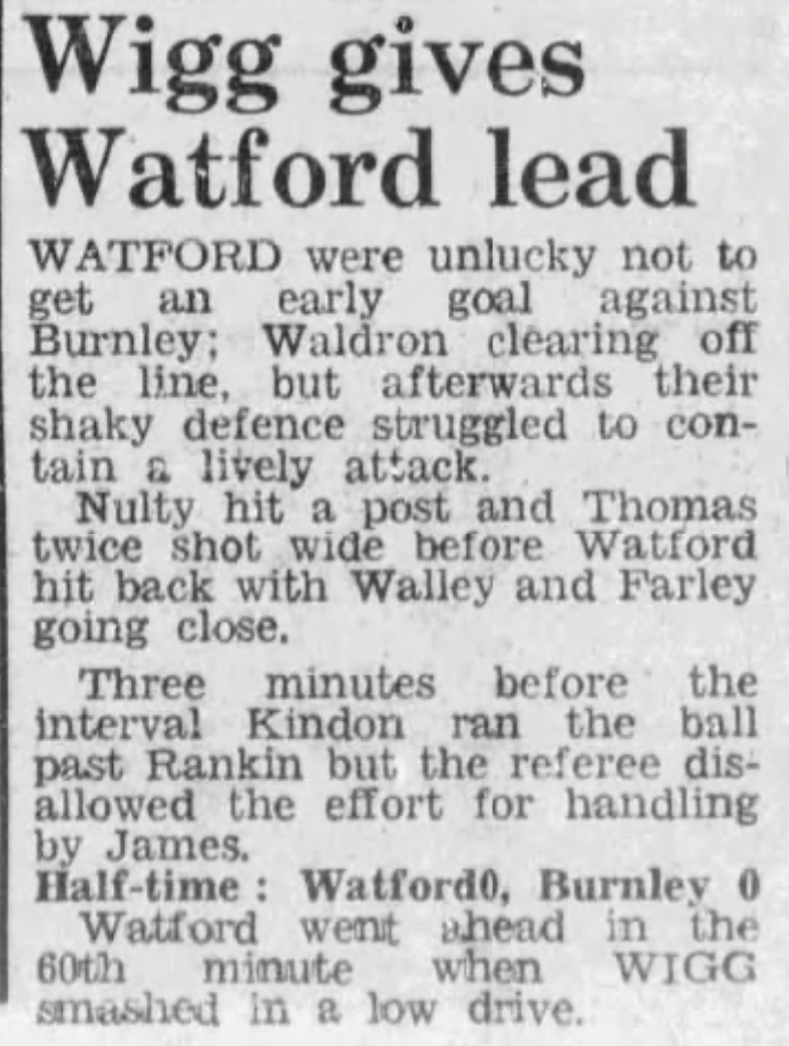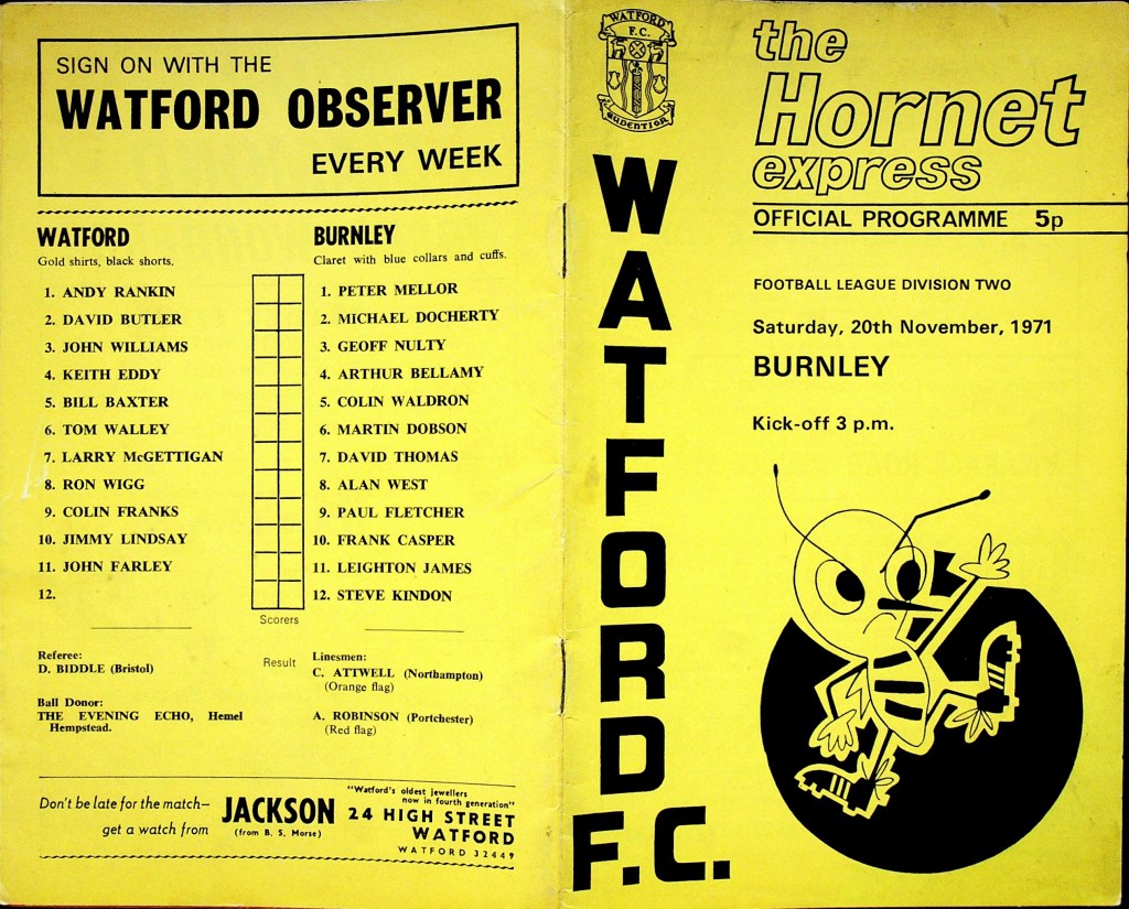 20th November 1971- Division Two, Watford 2 Burnley 1 Leave a Reply http://watford.fcdb.info?s=39599&id=2902 Evening Standard, 20 Nov 1971 Sunday Mirror, 20 Nov 1971 Sunday People, 20 Nov 1971 Watford Observer match report https://www.soccerbase.com/matches/results.sd?date=1971-11-20 https://www.11v11.com/league-tables/league-division-two/20-november-1971/ https://oldwatford.com/2002/02/26/26th-february-2002-new-division-one-watford-2-norwich-city-1/ Share this: Click to share on X (Opens in new window) X Click to share on Facebook (Opens in new window) Facebook