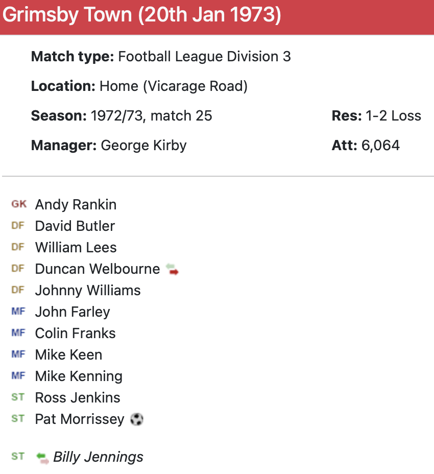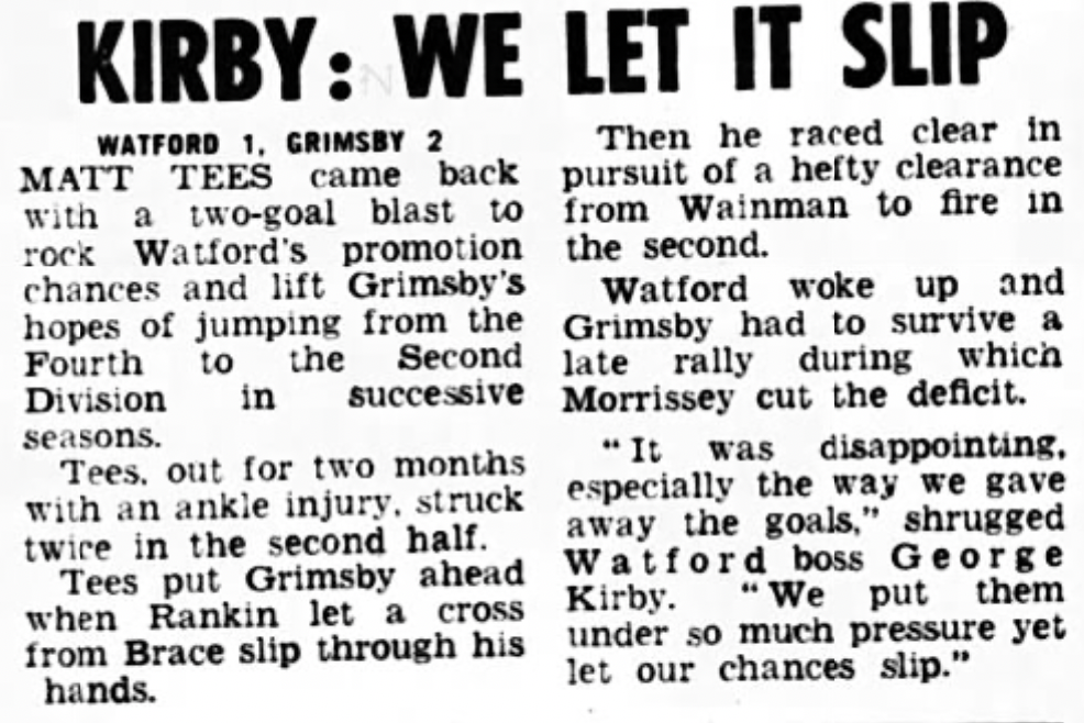20th January 1973- Division Three, Watford 1 Grimsby Town 2 Leave a Reply https://watford.fcdb.info/index.php?page=matches Sunday Mirror, 21 Jan 1973 Sunday People, 21 Jan 1973 Watford Observer match report Share this: Click to share on X (Opens in new window) X Click to share on Facebook (Opens in new window) Facebook